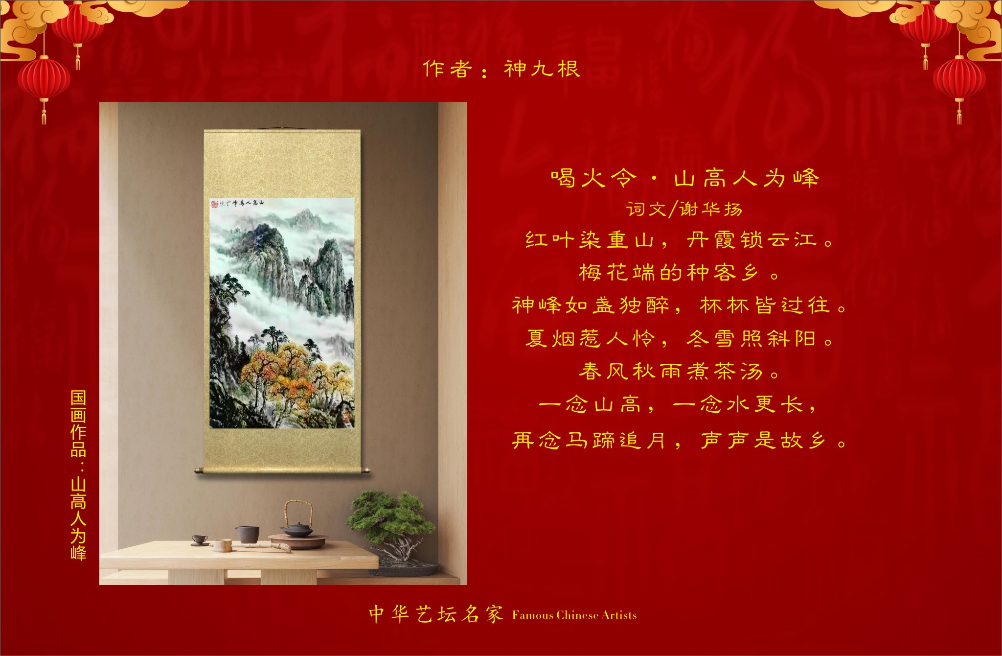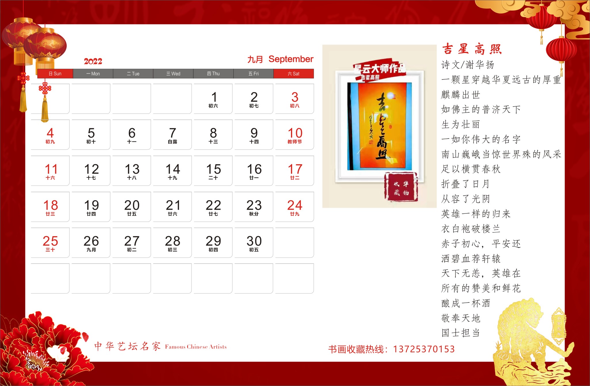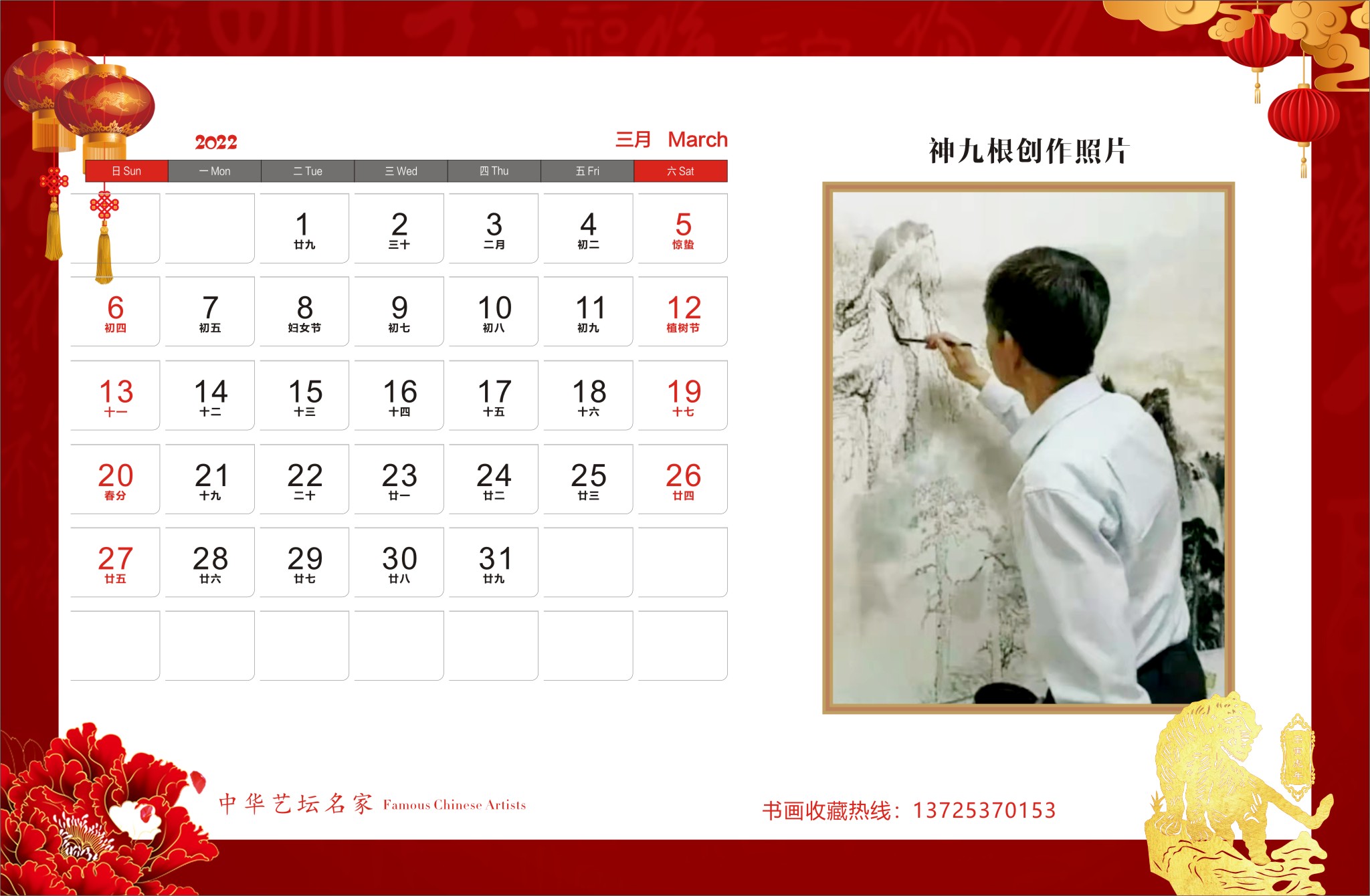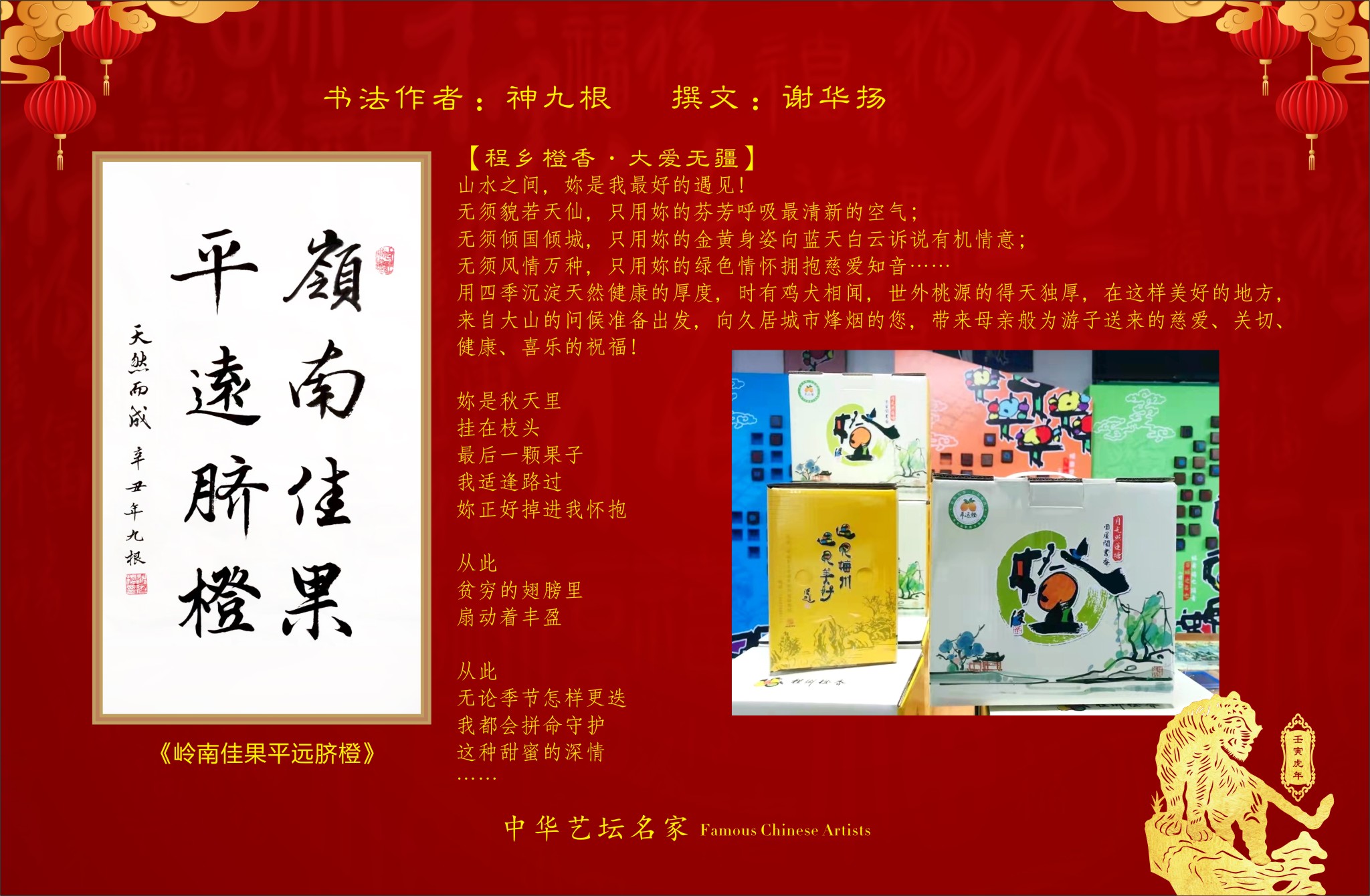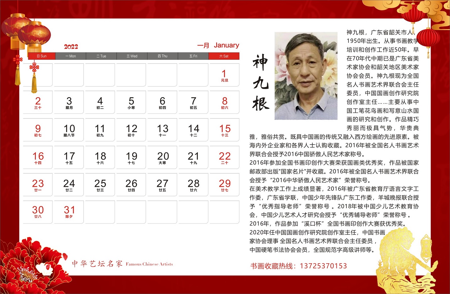 神九根书画作品,谢华扬先生诗词散文合集出版《2022年中华艺坛名家官方纪念版高档台历》