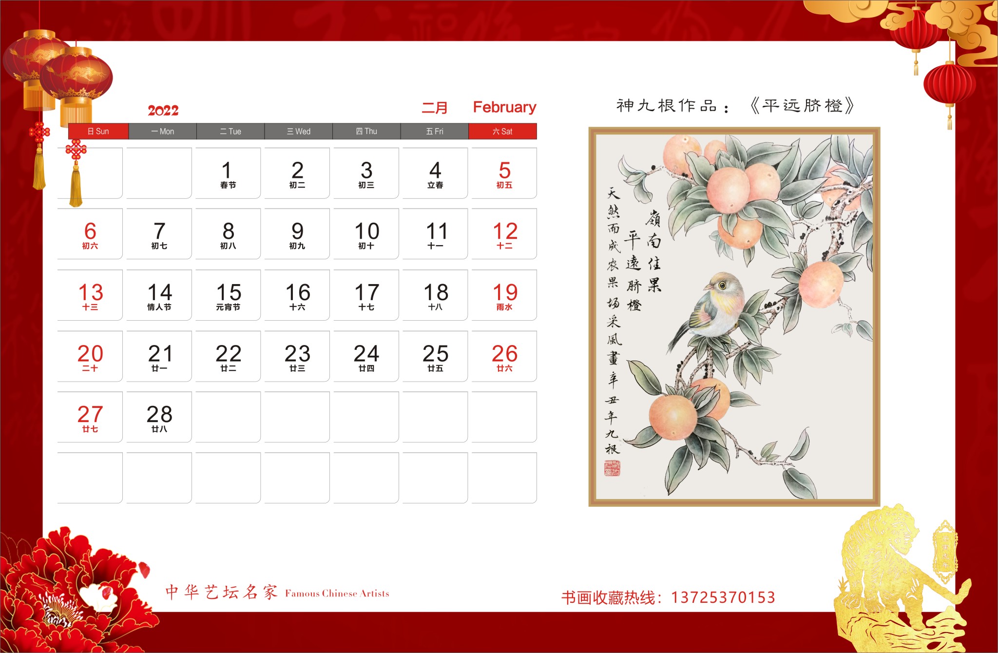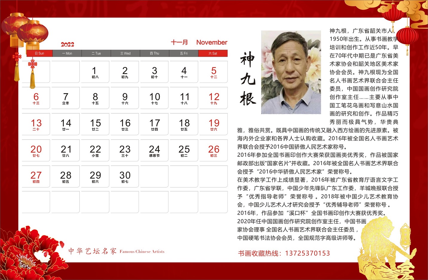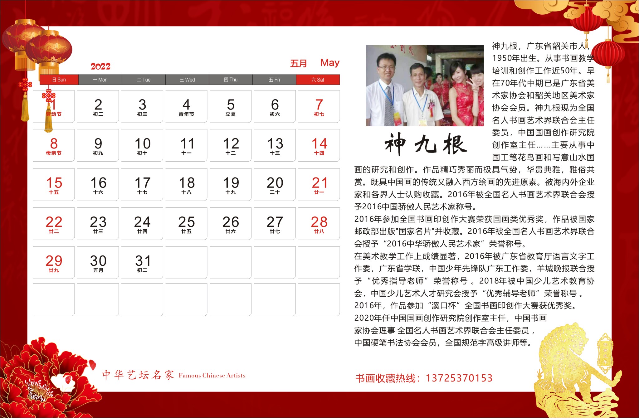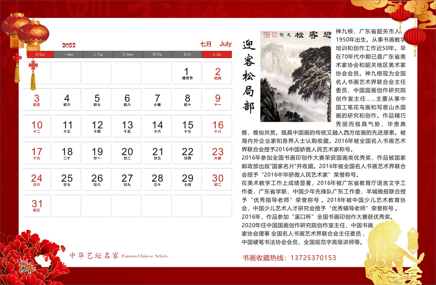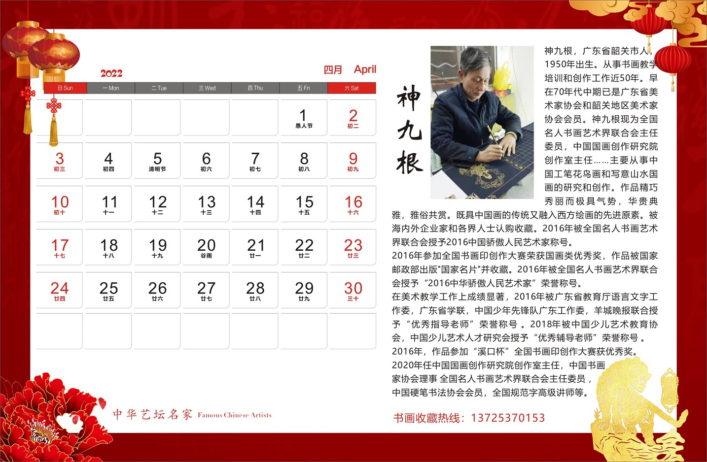 神九根书画作品,谢华扬先生诗词散文合集出版《2022年中华艺坛名家官方纪念版高档台历》