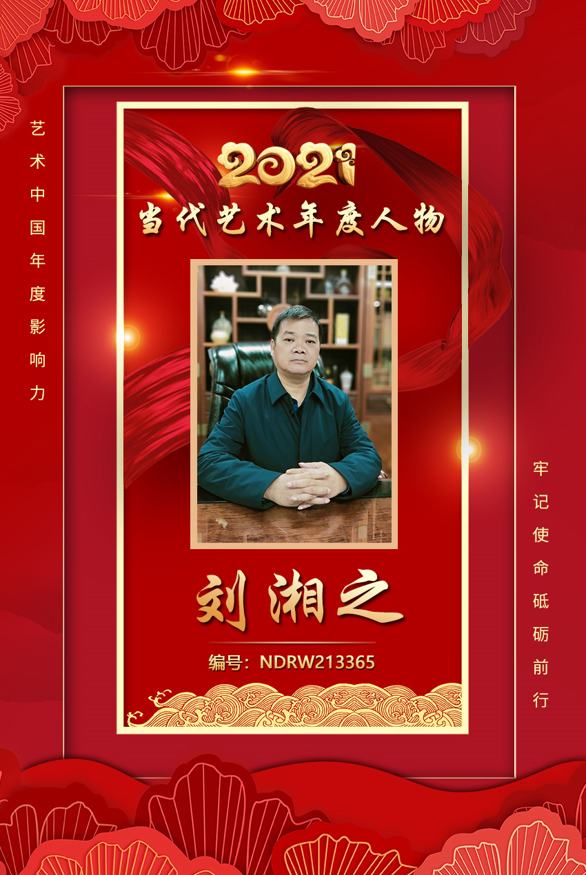 刘湘之,湖南桃源人,出生于1968年,中共党员,现任中国商业发展联合会书画院院长、中国现代书画艺术研究会常务副会长、中国书画家协会理事,北京常德企业商会执行会长,湘之文化(北京)有限公司董事长。在部队期间曾荣立三等功。1989年回到地方后,在桃源县人民政府工作过九年,之后怀着满腔的热血来到北京,并先后就读清华大学美术学院高研班在职研究生、中国人民大学工商管理硕士。自2006年从事中国文化产业以来,促进了中国文化产业的发展,为中国文化产业做出了重大的贡献。