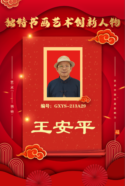 王安平1958年10月出生于湖北黄梅,定居厦门。现为国家一级美术师书法家。中华国礼特供书画家协会会员,央视书画频道签约书法家,中国艺术中心人才数据库大师列表认证书法家,中华艺术人物传世名家书法家,世界华人华侨杰出艺术家勋章获得者,世界文艺特刊报道著名书法家,中国书画家协会会员,中国海峡两岸书画家协会会员兼厦门海西分会副会长,中国华夏万里行书画家协会会员,中国民间书画家协会会员,大爱中国书画家志愿者联盟协会会员(万米长卷作品,代表中国文化前往二十八个国家交流展览),世界文艺诗书画特刋专题报导,中国好品牌影响力人物形象大使,河南今网书画院特聘院士。