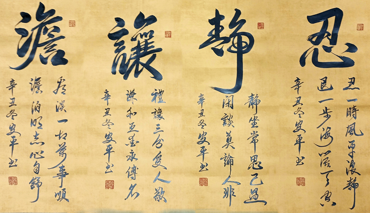 王安平老师,自幼喜爱书法,常年临池不缀,善于行草楷隶篆多种字体,杰出代表作是篆体和行草书,汲取众多名家笔意,崇尚古朴自然,追求遒劲洒脱奇逸独特的个性艺术风格,其作品深受各界领导大众们的喜欢和收藏,并以国宾礼品赠送给老挝国家主席(题写中老友谊万岁);作品多次参加入选全国各省市及港澳台展览竞赛,并荣获很多的金奖银奖和一等奖。