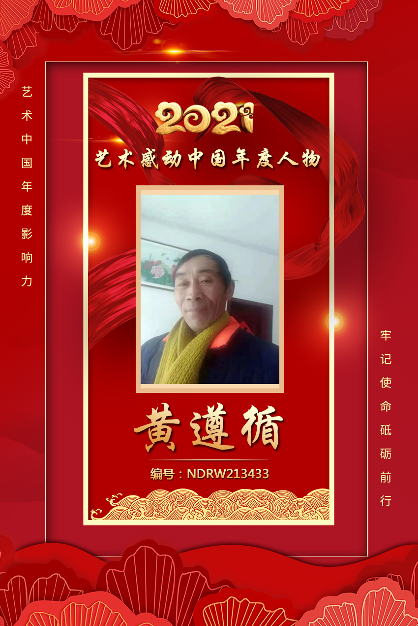 黄遵循,笔名无用,隐名黄土山人。一九六四年出生于安徽省金寨,毕业于福建东南大学美术系,2000年进修于国家美院油画系专业。从师著名国画大师黄永玉老师,中国实力派画家,国家一级美术师,中国杰出的艺术家,享受国家特殊津贴。中国美术家协会会员,中国中宣书画院院士,客座教授!作品多次参展国内外获得大奖!2003年纪念毛主席诞辰110周年白描《牡丹》获得一等。第二十九届北京奥运会书法《腾飞》获二等奖!2015年中国环艺书画大赛,作品油画《天真少女》获得金奖及特别创作奖,并授予中国书画百杰人物称号。2015年秋全国书画500强大赛中,作品《万山红叶图》获得金奖,并授予中国书画500强百佳人物称号!2016年纪念毛主席,周总理,朱德等伟人逝世四十周年,全国名家书画大赛,作品《松鹤迎春》获得金奖及勋章一枚,2016年中国兰亭系书法大赛,作品《千字文》获得金奖,2018年荣获艺术感动中国年度人物,2019年度再次荣获艺术感动中国年度人物。202O年全国两会重点推荐的人民艺术家。2021年全国两会重点推荐的人民艺术家!作品参展过,新加坡,韩国,希腊,俄罗斯,芬兰,泰国,伊朗,埃及等国际美术双年展。个人出版书籍有,《写意荷花》《写意花鸟》《工笔牡丹入门》《工笔花鸟》《素描论点》《诗词论平仄》等!