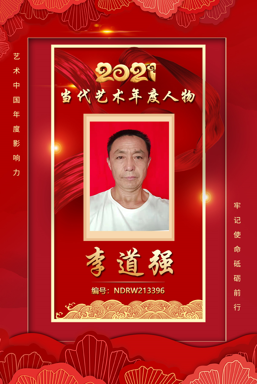 李道强,男,1973年生于山东省济南历城区唐王,师范高中毕业。中华国礼艺术家,中华艺术人物。