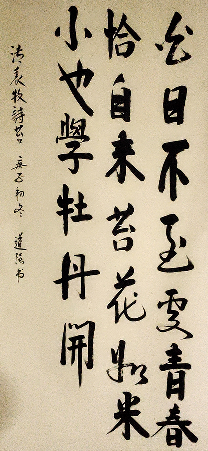 李道强号《草根人家》自幼酷爱书法,18岁在老师卢建新先生指导学习书法,始于唐楷入手,后上追秦汉魏晋碑帖,法古鉴今,取长补短,勤学苦练,日练夜读,在各位名师指点下逐步攀岩高峰,创出自己的风格。在刘世哲老师指点下学习画牡丹,历尽8年的时间,工笔于大写意融为一体,独创一种画风,在深圳电视台和凤凰卫视电视台轮番播出。