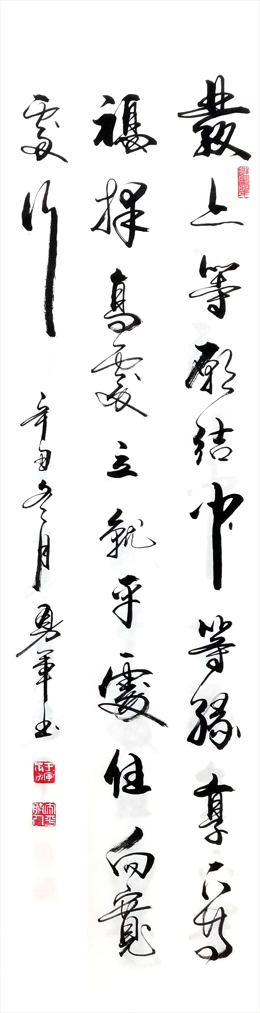 王勇军的书法,笔墨在行运中抒洒,从整体的艺术造诣上来看,王勇军先生的书法作品无疑是代表了他多年来的心血历程!在这其中,是有着他对传统翰墨的深刻体悟和实践,更是有着他对个人心境的全面升华和塑造!同时,也正是得益于这些不可磨灭的艺术结晶,王勇军先生才能在当下书坛中取得那令人仰慕的文化成功!大家风范,当是如此!