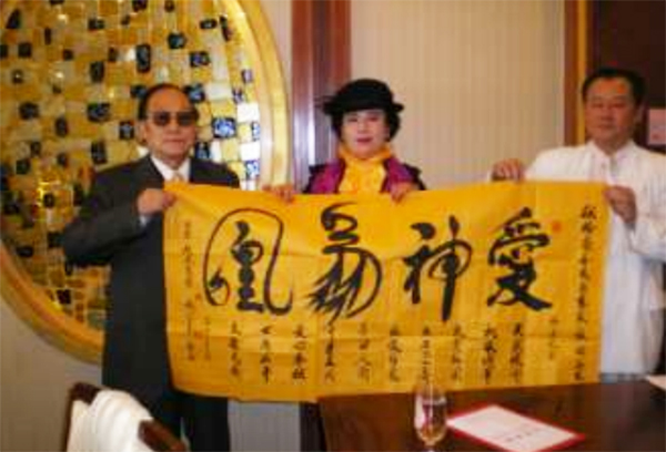 为台湾友人张碧珠(右)女士兴建北京台湾一条街 题词祝贺