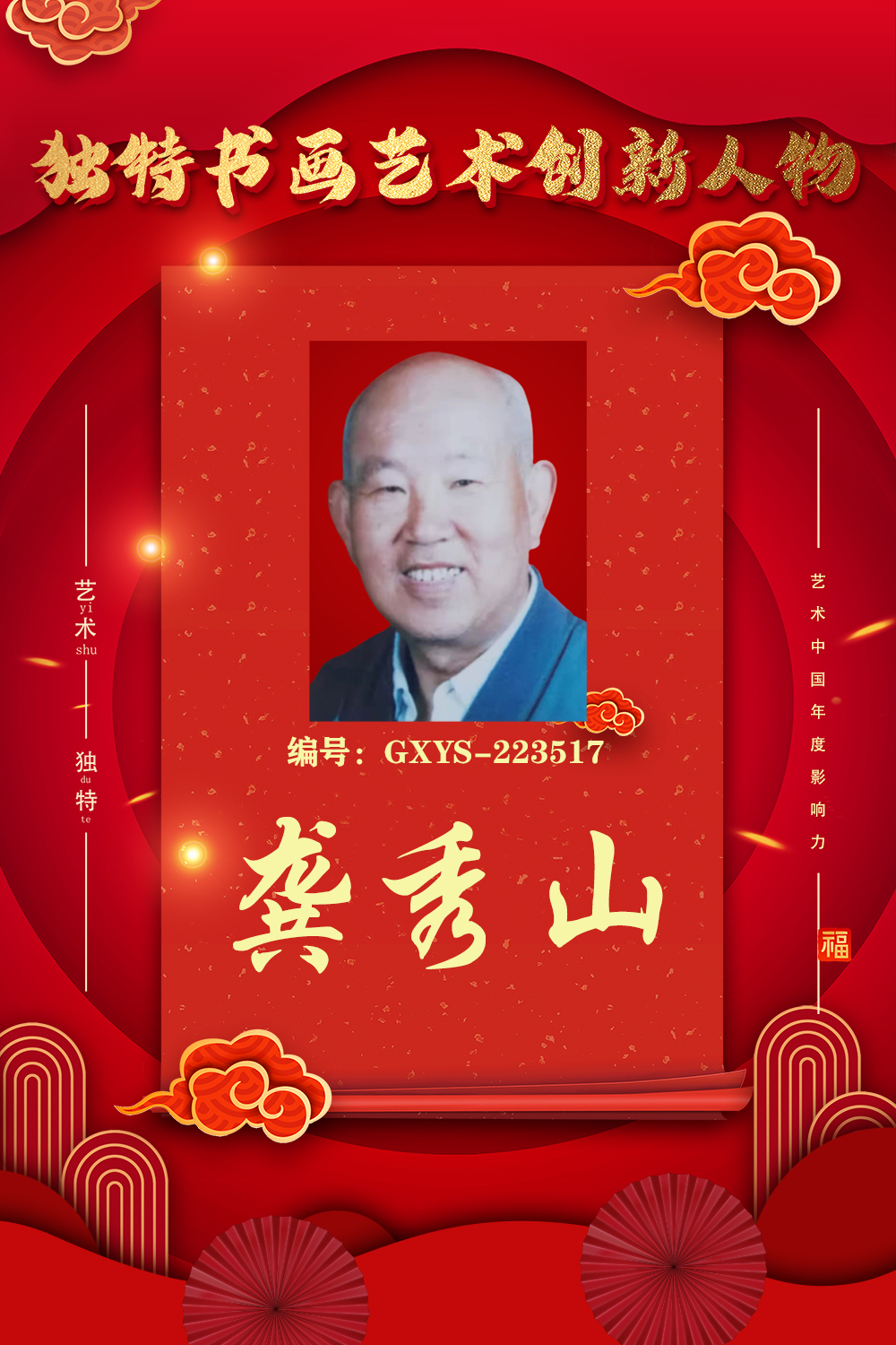 有许多作品被国家机关、高等学府、星 级宾馆收藏,还有许多书法作品流传到美国、德国、日本、韩国等多个国家。龚秀山先生2008年被评为北京市老年书画先进工作者,艺术传略1994年入编《中国当代艺术界名人录-第 一卷》1998年2月入编《东方之子-第 二卷》同年5月中 央电视台(2台)做过简要艺术报导。