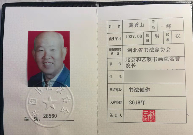 龚秀山先生,1937年生人,现为中国电子科技集团公司第四十五研究所退休干部(处级)。龚秀山先生为中国书法家协会会员、中国书画家协会理事、中国老年书画研究会创研员、中国文联书画艺术交流中 心会员部理事、中国书法艺术研究院艺委会会员、北京通州区老年书画研究会书法创研组组长、艺委会委员,河北、甘肃两省书协会员;书法作品多次在《书法》、《书法导报》、《中国书画报》等专 业报刊发表。