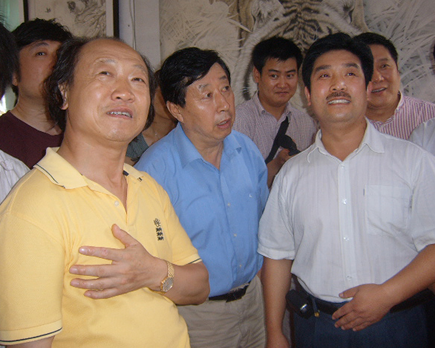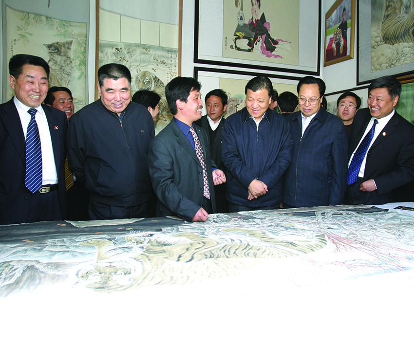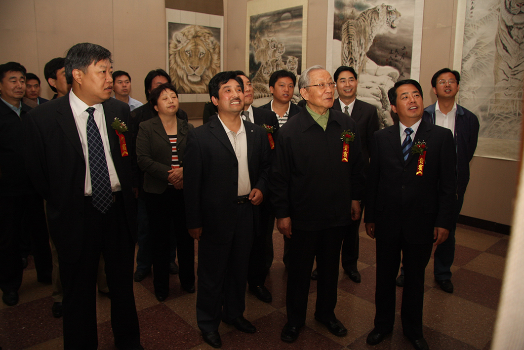 中央政治局委员、书记处原书记、中央军委原副主席张万年上将观看画虎展