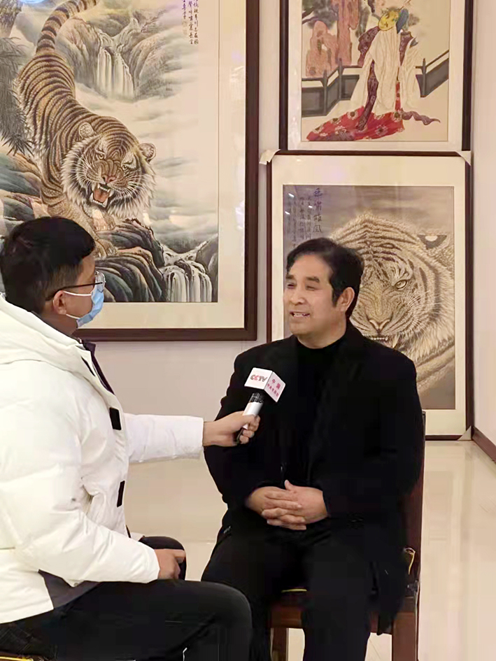 王建民:1966年生,别署稼轩主人,被人称为当代“虎王”“虎痴”;国家一级美术师、商丘人大代表、商丘美术家协会理事、中国美术家协会会员、中国画虎第一村书画院院长、