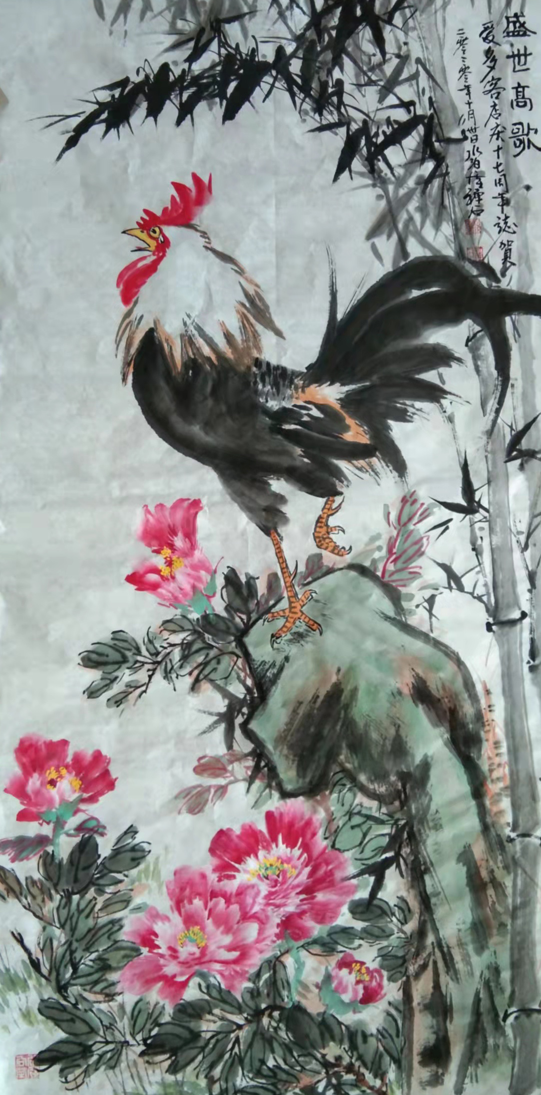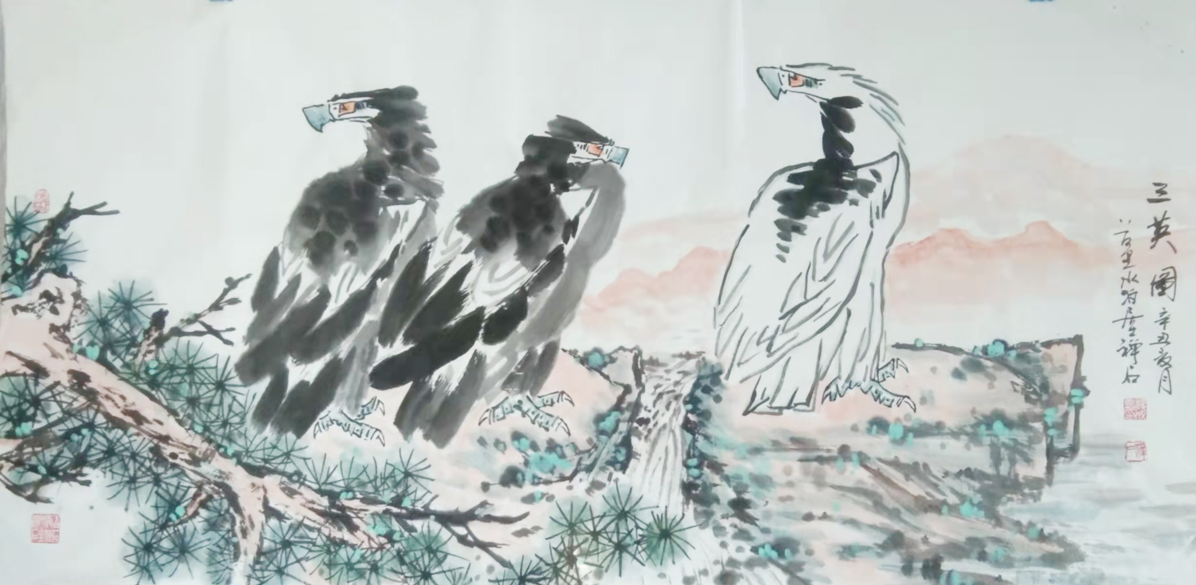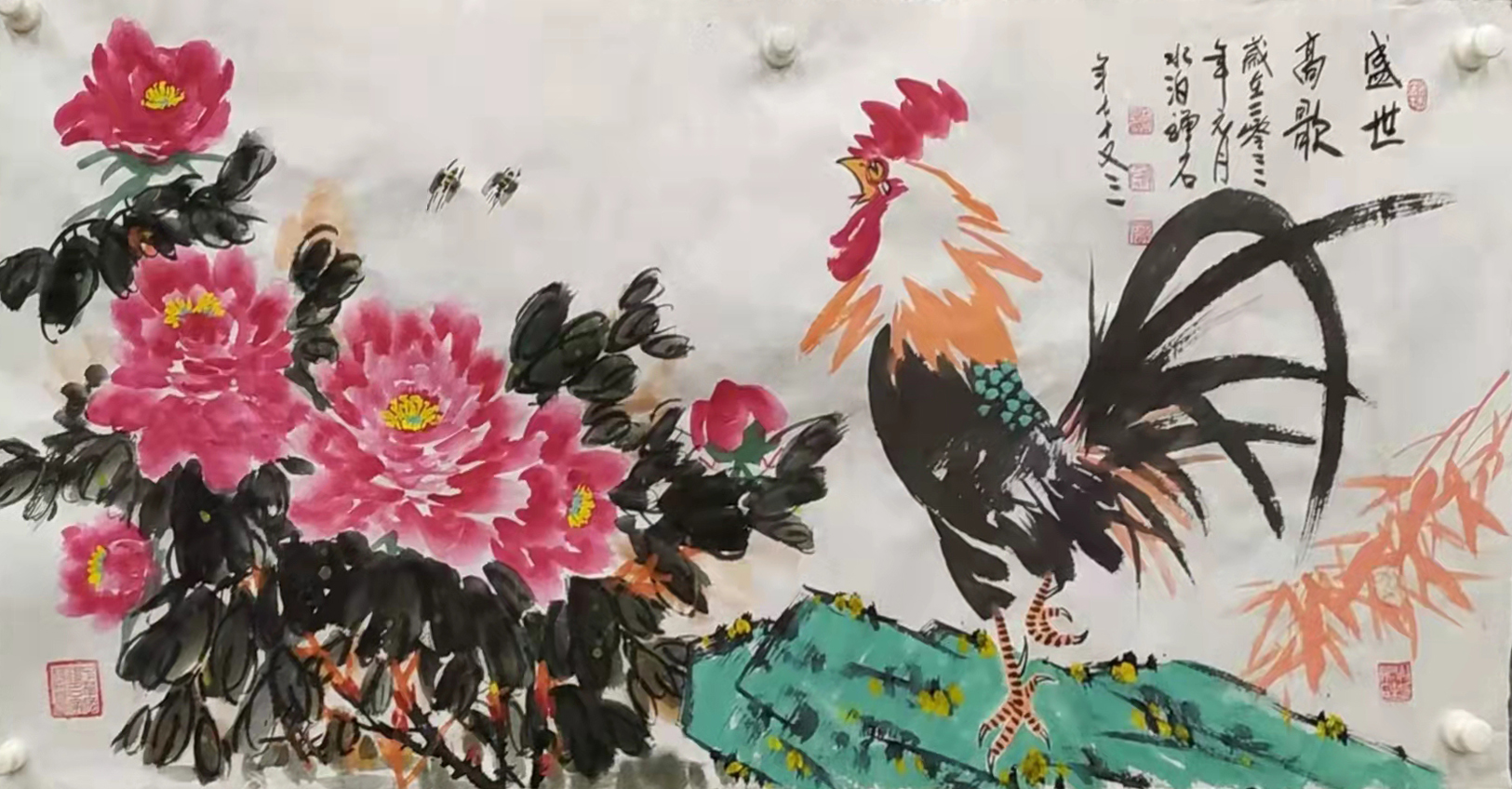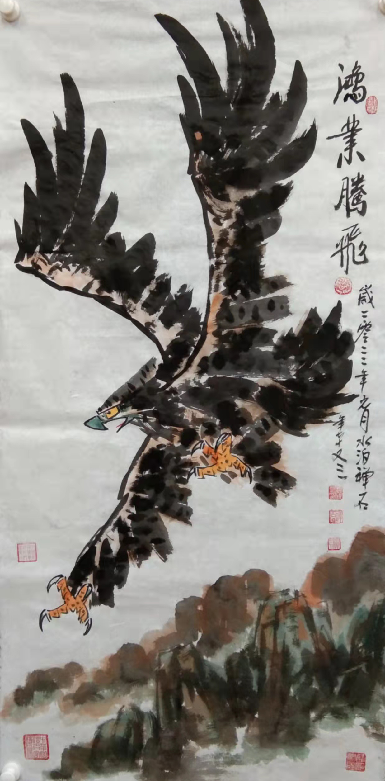 《鸿瑞》图七十一只鹰被收藏,《双鹰》 《单鹰》《长寿图》《盛世高歌》《春颜》《荷花》《牵牛花》等作品被收藏,作品鹰被上海吴昌硕纪念馆馆长吴超老师收藏,提名为鹰王称号并篆印并拍卖。