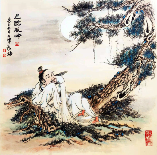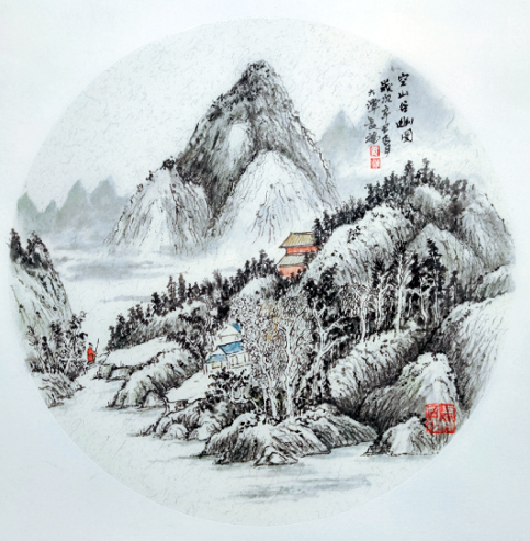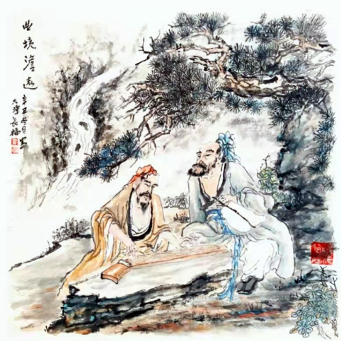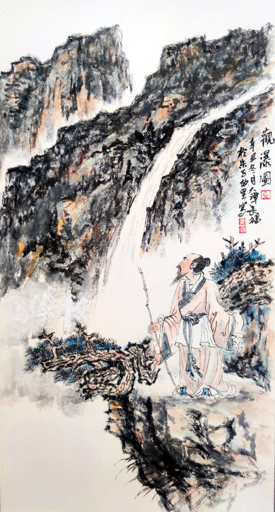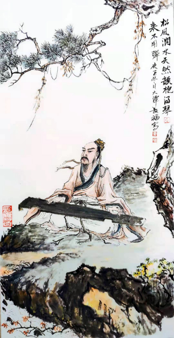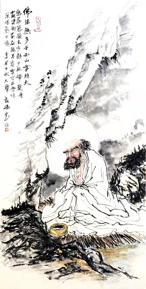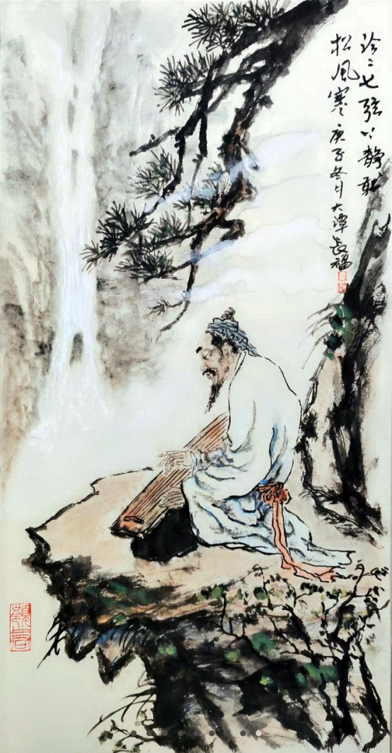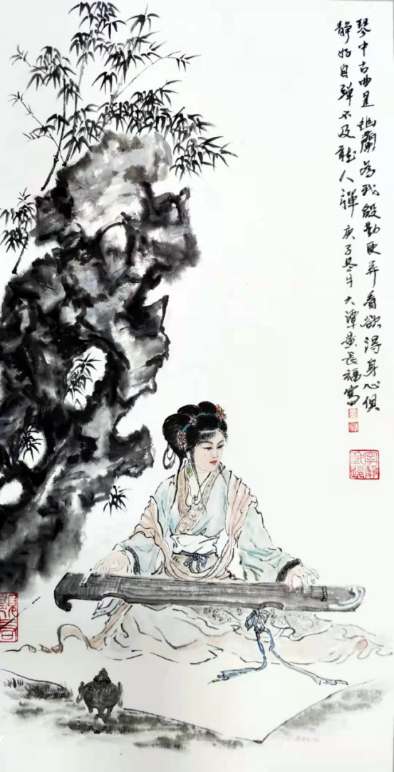 近年来,他又在反复钻研临习《芥子园画谱》理论与实践的基础上,专注于水墨人物画的创作,并常得名画家翁振新、林容生、宋展生等大师的悉心指导。古壁丹青色,佳画照廊宇!