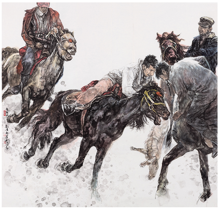 2014年创作岩彩画《待发》180cmX180cm