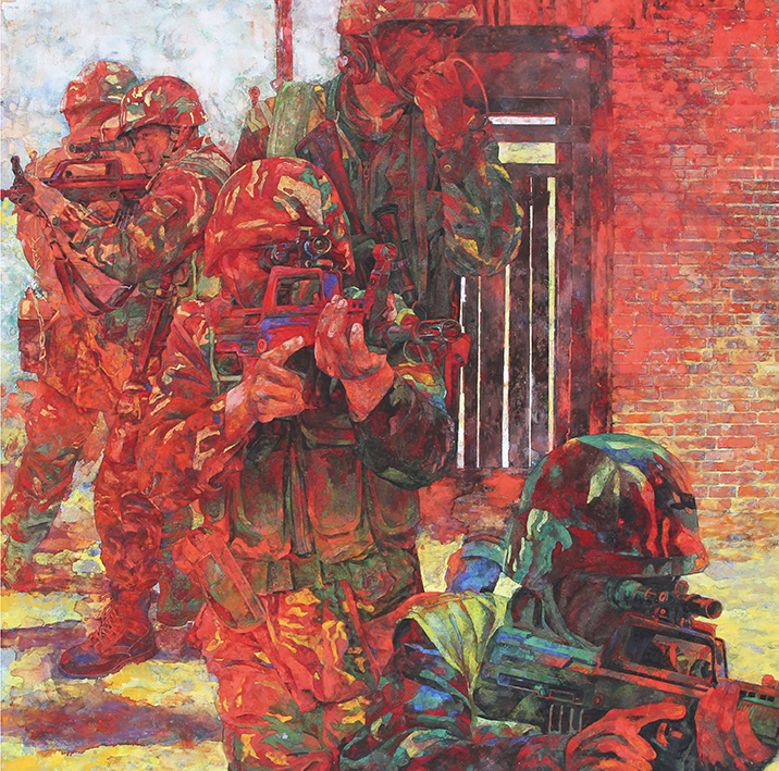 2010年创作岩彩画《特战精英》160×160cm