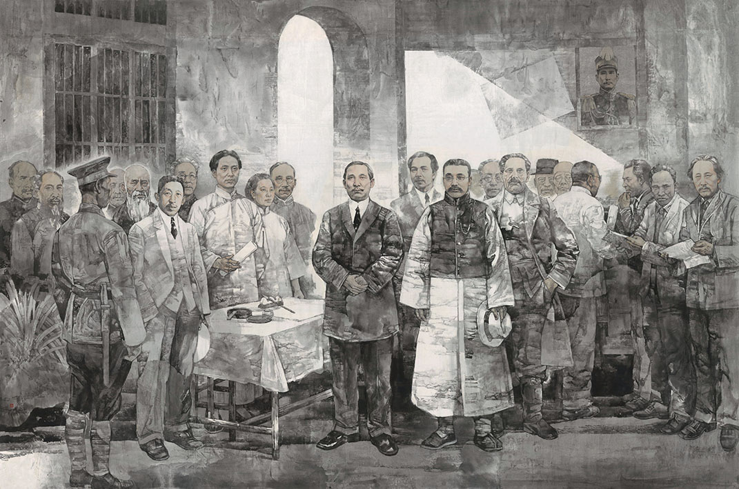 2019年1月中国画《第一次携手——中国共产党代表参加国民党第一次全国代表大会》草图(与人合作),入选由中宣部、中国文联、财政部、文化和旅游部主办,中国美术家协会承办的“不忘初心 继续前进——庆祝中国共产党成立100周年大型美术创作工程”。