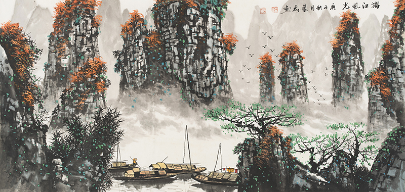 朱磊先生的创作态度认真,构图严谨,设色考究,充分体现大自然之美妙意境,体现天 人合 一的美学哲理。作品更体现在中国绘画传统基础上,开创更新的画法,充分体现了古朴清新、浑厚华滋、灵动传神的意境。