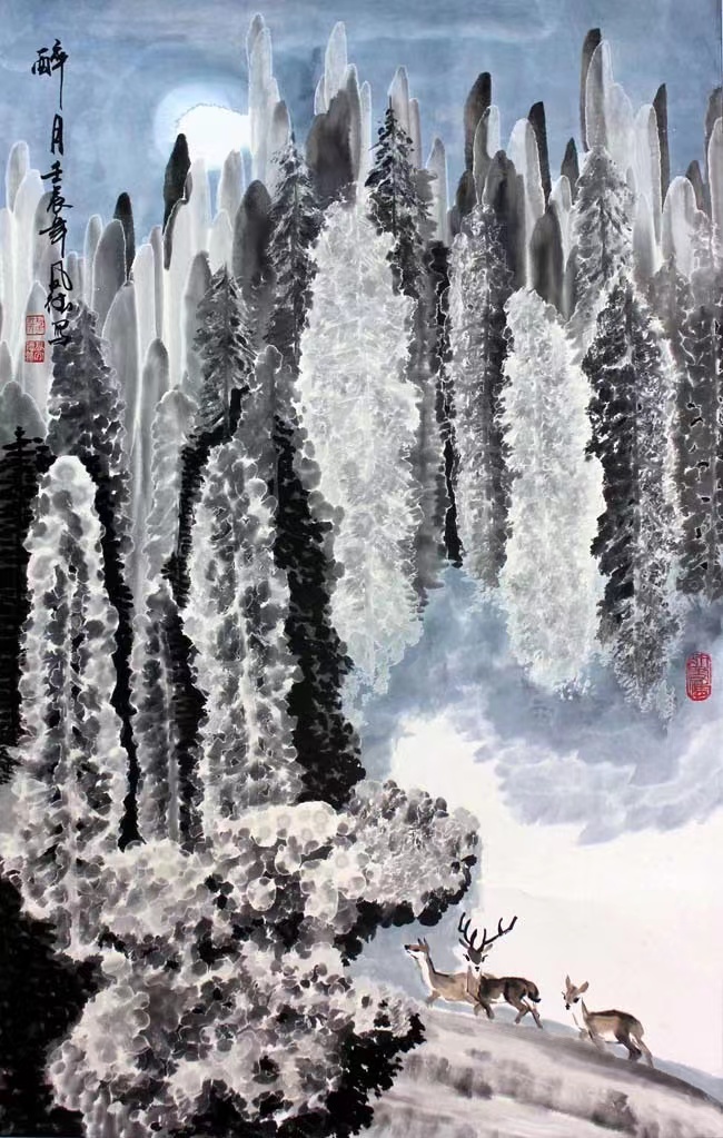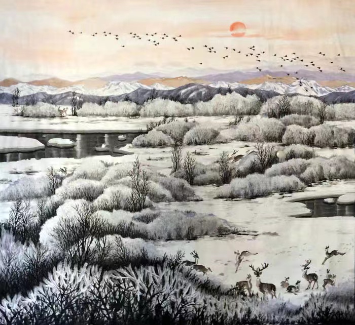 高凤德:生于黑龙江省巴彦县,现居北京,师承冰雪画派创始人著名画家于志学先生,现为中国书法家协会会员、中国工艺美术家学会会员、中国国际书画艺术研究会会员、北京市美协、书协会员、中国冰雪画研究会理事、中国公共关系协会艺委会委员,北京宝藏天下艺术馆签约画家。近年来多次参加全国性美展并获奖、曾在中国美术馆、北京仁和美术馆、北京现代文学馆、于志学美术馆、山东省美术馆、大连艺博会举办展.览。作品获北京市美协新人新作奖。2004年参加中国美协在人民大会堂举办的春节茶话会。2006年盛世收藏拍摄《走进当代冰雪画家高凤德》专题片在央视多家电视台报道。2014年作品入选中国美协主办的七彩云南写生展(入选作品具备入会条件- -次)2015年冰雪画作品(春) 入选中国美协主办的美丽新丝路、翰墨定西行(获优秀奖、美展最高奖)多幅作品发表于中国书画报、今日科苑、诗书画报、中外新闻、都市生活、中国商务报、羲之书画报。2016年9月应俄罗斯邀请,赴俄参加二战胜利七十一周年国际造型艺术展,同时参加俄罗斯艺术家协会举办的《握手》国际艺术展,特授予荣誉证书,部分作品被俄罗斯艺术馆收藏。由中国教育电视台拍摄纪录片《冬日情愫》记冰雪画大家高凤德、2017年 (中国邮政、中国集邮出版:中国当代艺术大家、大作)高凤德限量版珍藏邮册.艺术家卷。2017年金秋参加东京第二十七回全日中书画精英大展并获金奖,为访日代表团副团.长。由中国网络电视台、中国美术家电视台联合推出2018全国两会专题[走进新时代文化新传承] -传访著名画家高凤德。个人传记被编入《中国书画名家大师画典》、《书画纵横》、 《我的家在东北松 花江,上文艺群星荟萃》、《跨 世纪书画作品集》、《中国书法家作品集》、《中国画小品集珍》、《嘉翰杯书画作品集》 部分作品在日本、韩国、新加坡、澳大利亚、香港、澳门、台湾、俄罗斯等国家和地区展出并收藏。作品《塞外野趣》、《白桦林》、 《北国春韵》在于志学美术馆展出并收藏,2019年在家乡举办“翰墨丹青暖苏城”庆祝建国七-十周年高凤德师生书画展。