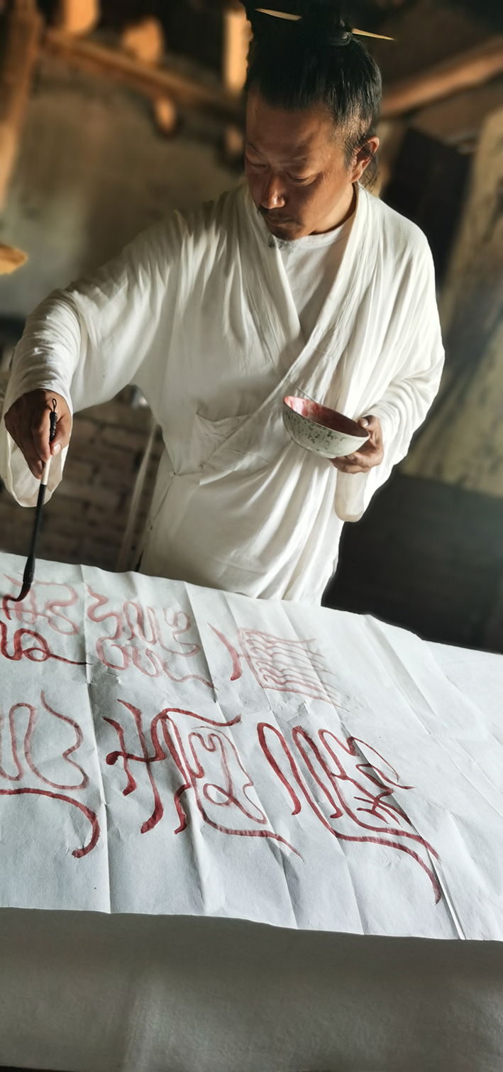 中国道家傅山书法传承人,陕西省终南山玉皇廟主持秦化德道长。