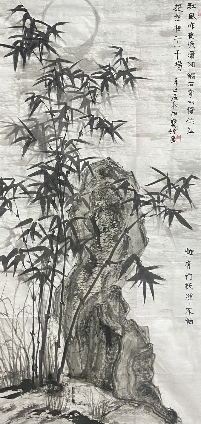 余泓宝,1967年出生于广东省茂名市化州县的一个普通小山村。早早便背井离乡。据回忆,他曾干过机电安装、维修工、承包建筑工程做过短时间的“工头”、从事电脑销售和电器销售。于2021年回到茂名市创办南香饭店。虽然生活曲折艰辛,但是余泓宝对书画热情丝毫不减,始终保持孜孜不倦的学习态度。始终对生活充满着满满的朝气和盼头。以前在海南,广西等地工作时,经常抽空专研画法,尤其是对竹子的热衷最为显著。如今仍坚持一手掌厨,一手执笔 ,耕耘不辍。潜心画竹的样子经常被友人夸赞。经过常年累月的反复练习和观摩,赋予竹子不一样的生机。在平时生活中,余泓宝对竹子有特别的感情,走走拍拍,手机上存了许多地方拍的竹子照片,自己再通过投影仪独自在房间里研究,再在宣纸上来回构造,想象竹子在心里的样子,最后成就了自己的作品。余泓宝总对自己说,心由相生,心里的想法才是自己最想表达的画,作品大多是自己的影子,可能是快乐,可能是孤独,也有可能是坚韧的。艺术不就是人的精神支柱嘛,大概我画画也就是这个意思啦,感谢朋友的协助,使自己的作品被更多人认识,进入到茂名市画协,认识到更多的挚友,使得自己的墨竹获得更多朋友的认可,取得一定的知名度。不求浓艳、豪强,只在淡雅,秀润中抒发个人意趣所画之竹不在光圆其貌,而在“锦里裹铁”中柔条萌发,潇洒之致。