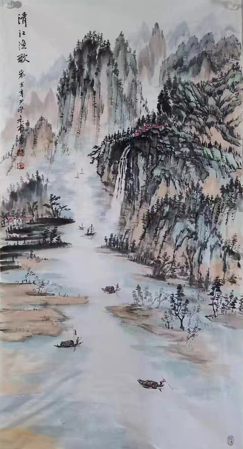 2021年在河南省抗洪救灾中,向郑州市捐赠作品《秋日轻舟》。