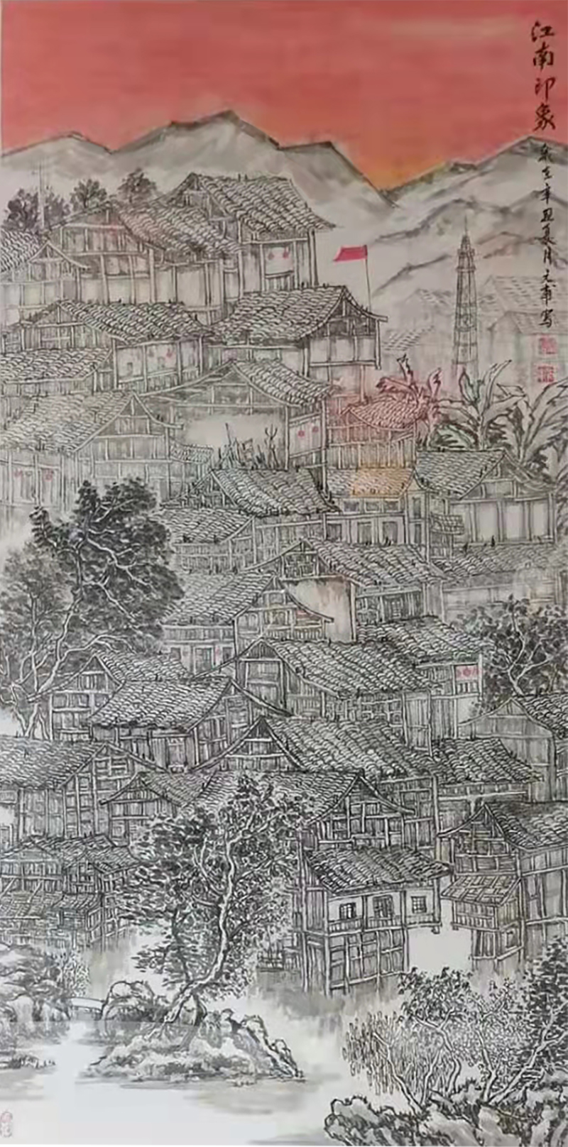 2021年,作品中国画《江南水乡》,参加河南省第26届美术作品展,获优 秀奖;