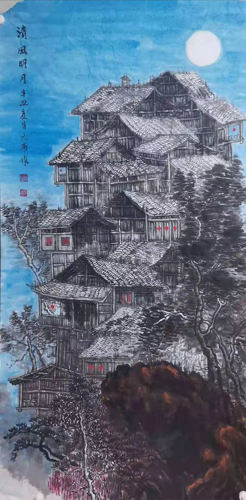 2021年在庆祝中国共 产 党成立100周年之际,作品国画《江南之梦》被中国道教协会收藏。