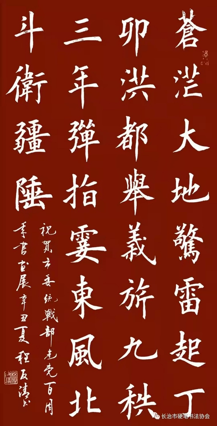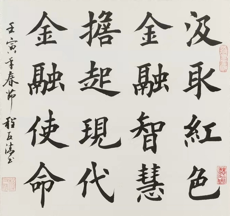 程反清,回族,出生于山西省长治市潞州区,研究生,建筑工程师,国家一级策划师。长治市书法家协会副主席,长治市政协委员,潞州区首届人大常委。师从爱新觉罗启骧先生门下六十一弟子。自幼喜爱书法艺术,并擅长欧,隶,启体书法。举办过长治市纪念改革开放四十周年和中华人民共和国成立七十周年书法展并组织市书协为赴武汉抗疫最美白衣天使赠送书法作品活动。在参加国家,省,市的历届书展活动中多次获得过奖项,特别是在北京冬奥期间,以自己的实际行动宣传了奥林匹克精神,并弘扬了中华书法文化艺术的精神,并向世界展示了开放自信热情友善的良好形象被授于了“2022中国冬奥艺术形象大使”荣誉称号。
