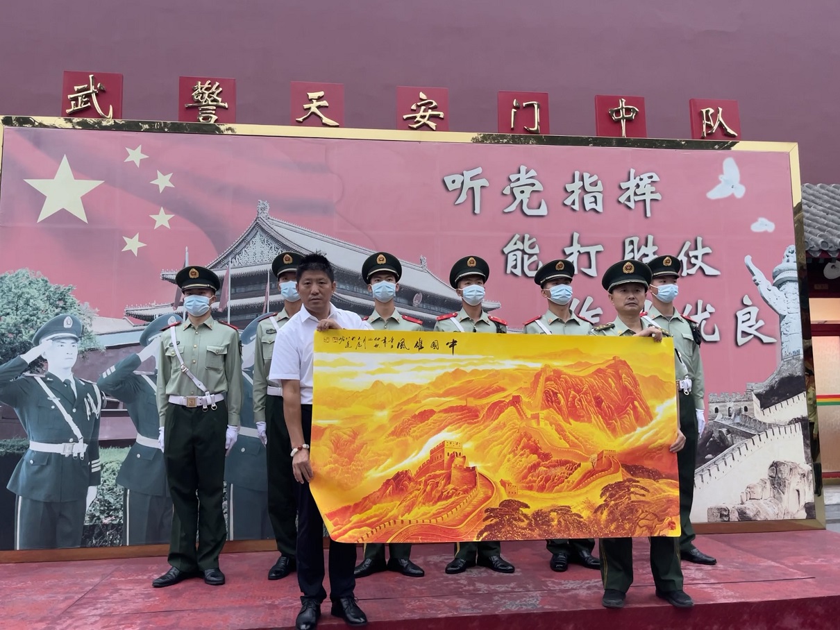 2021年9月23庆祝中华人民共和国成立72周年!当代著名画家王大为先生由武警中队跟随走进国旗护卫队在天安门慰问文化交流。《中国雄风》《万山红遍》《护卫天团》被永久珍藏。