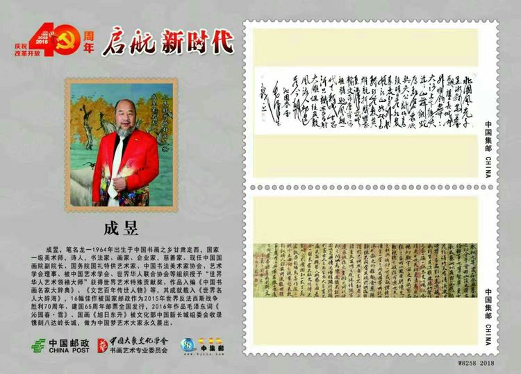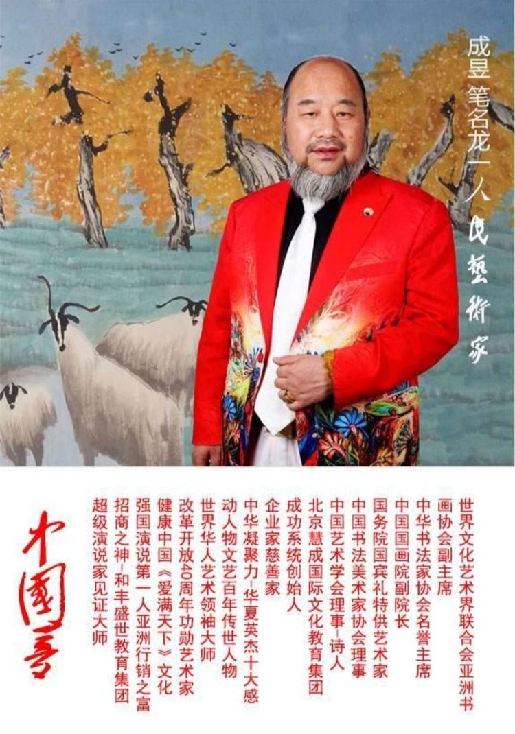 成昱,笔名龙一1964年出生于中国书画之乡甘肃定西,国家一级美术师,诗人,书法家、画家、企业家,慈善家。现任世界文化艺术界联合会亚洲书画协会副主席,中华书法家协会名誉主席、中国国画院副院长、国务院国礼特供艺术家、中国书法美术家协会、艺术学会理事、被中国艺术学会、世界华人联合协会等组织授予“世界华人艺术领袖大师”获得世界艺术特殊贡献奖。