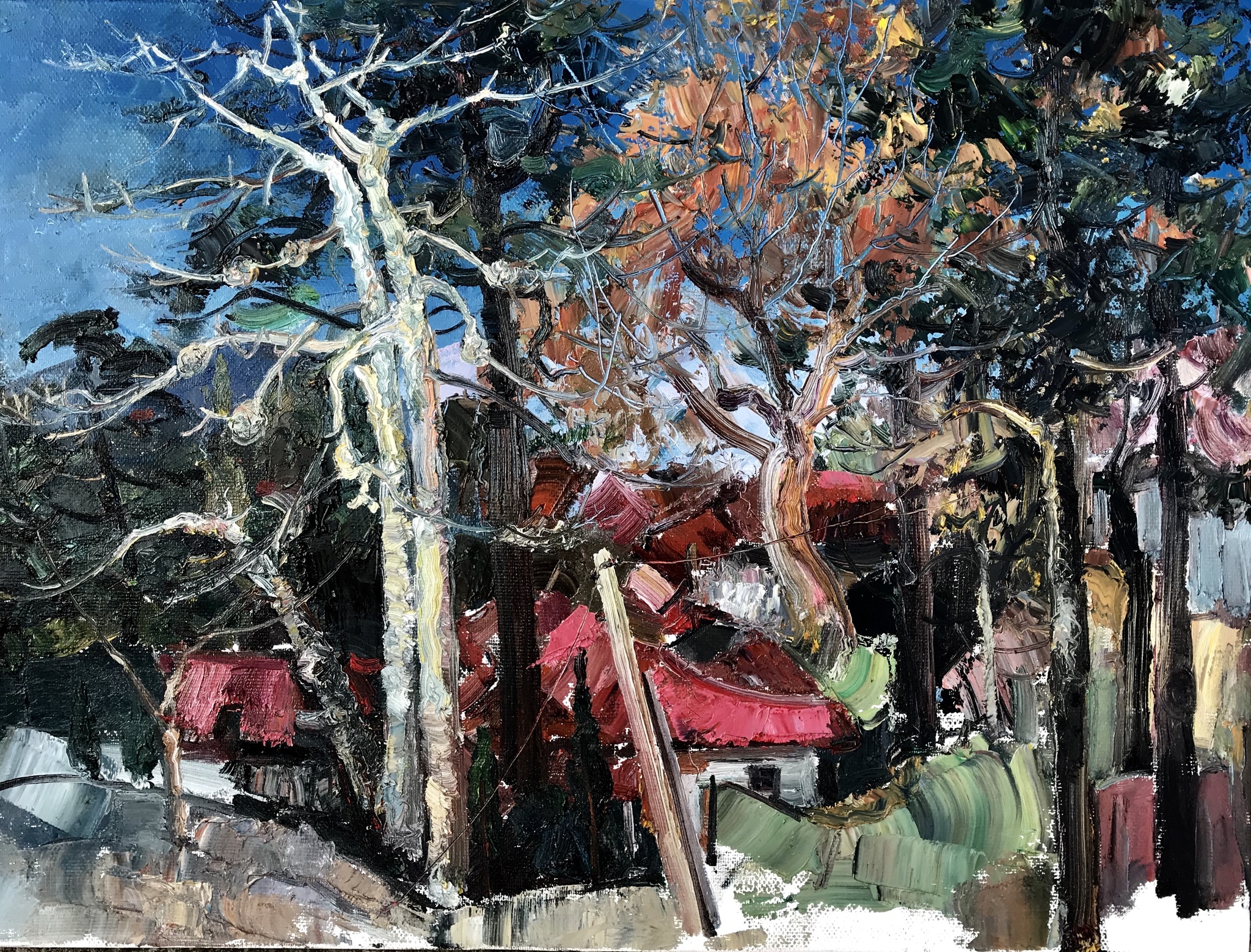油画:作品名称:《庐山有间翰林院》2019年11月。 尺寸:80X60
