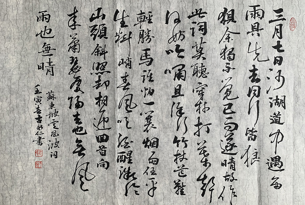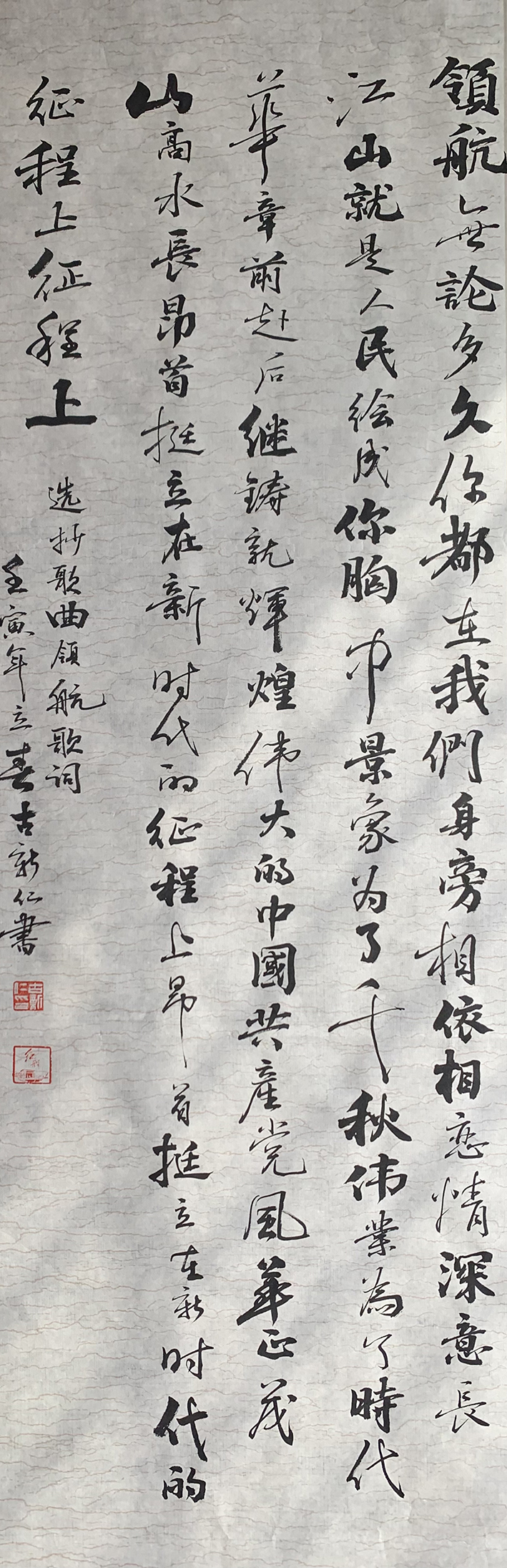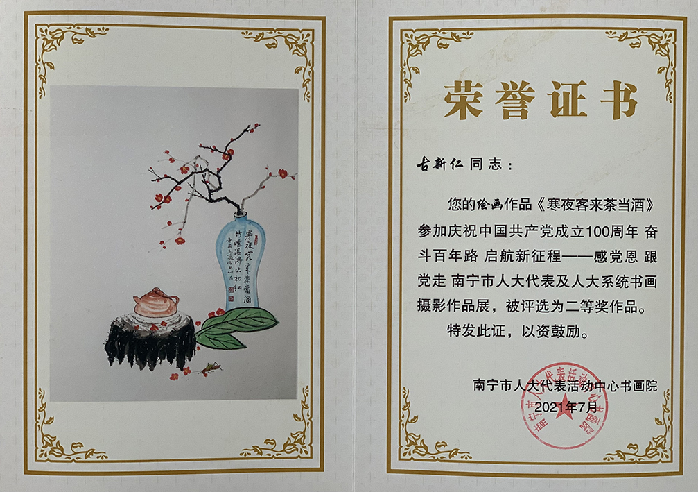 中央国家机关书法家协会会员古新仁,书法作品清新脱俗而淡雅有味,笔力遒劲而张力十足,藏露结合而方圆并用,散发着宁静的气息。工作之余,临写王羲之兰亭序和孙过庭书谱等,在作品中诉说情感和风骨。