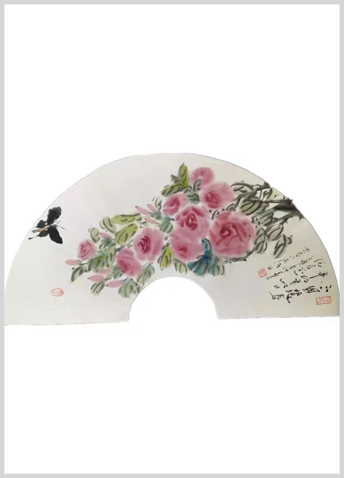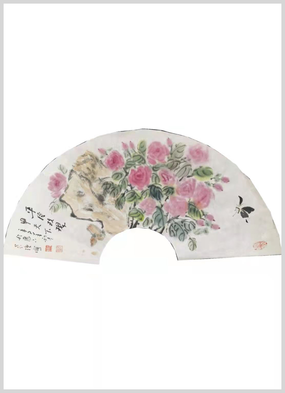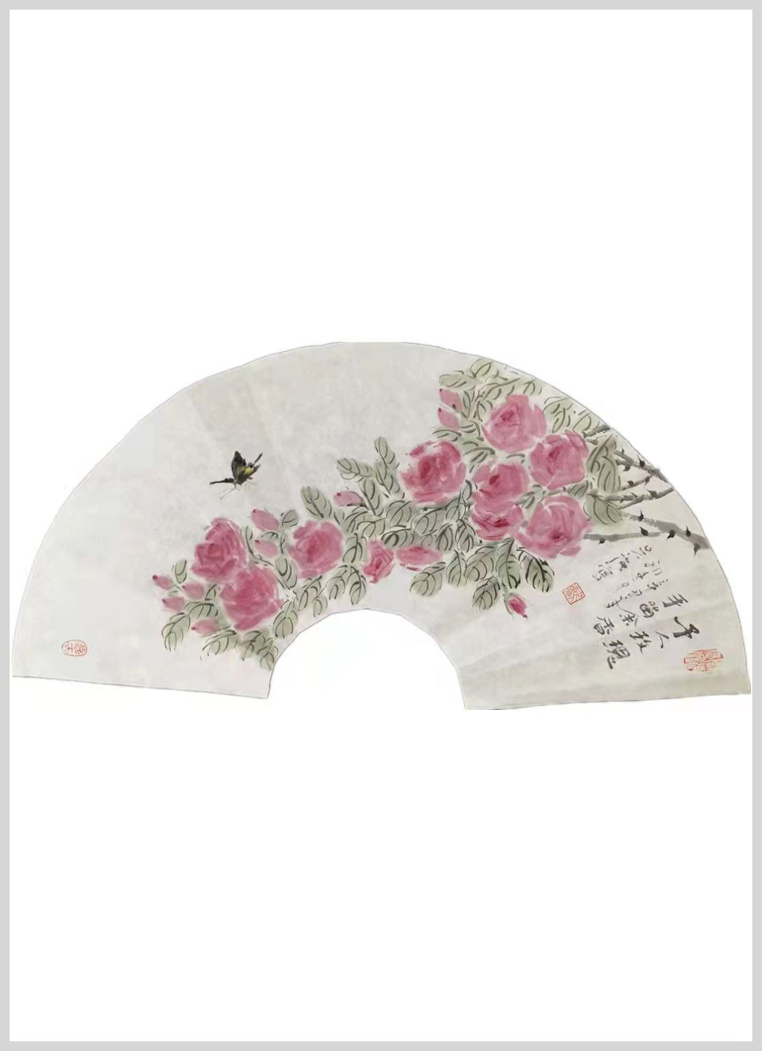 起笔落笔写丰姿,画以抒情诉乡韵。每每在扇面绘玫瑰,总是可以让淡淡的乡愁,远播五湖四海,让济南的文化魅力轻漾心田,很有魅力,也极有文化审美的向心力。如得到吴强先生一件扇面玫瑰,必是映着齐鲁的雅,显着儒家的品,可以装饰万家屏障,让人觉意杳然如闻家乡馨美的悠悠情怀。