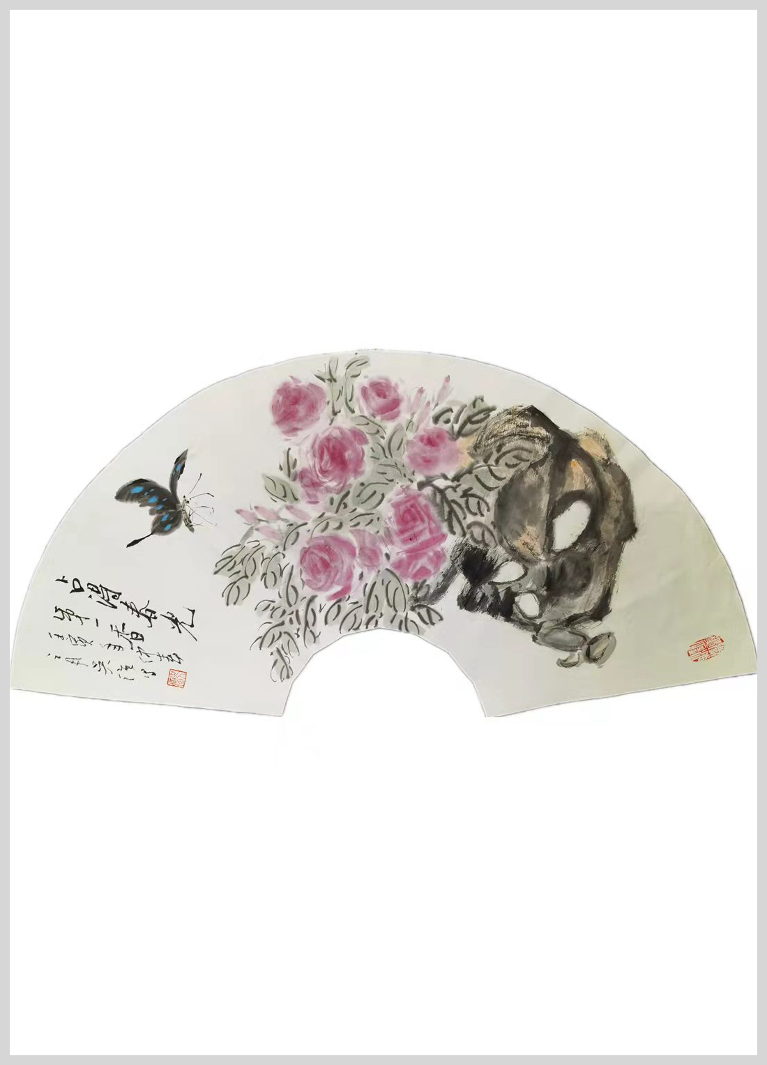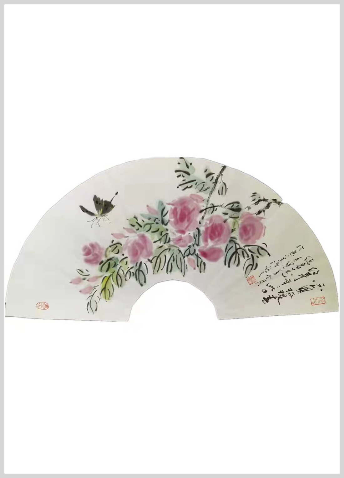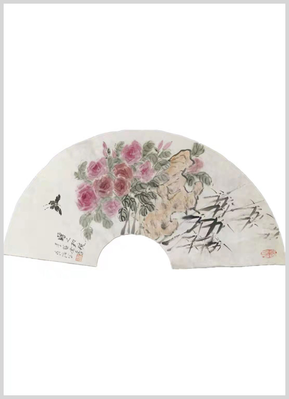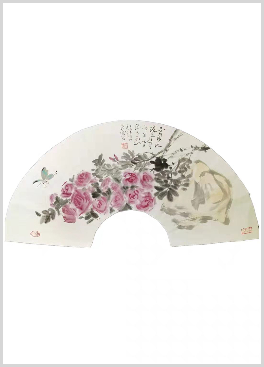 起笔落笔写丰姿,画以抒情诉乡韵。每每在扇面绘玫瑰,总是可以让淡淡的乡愁,远播五湖四海,让济南的文化魅力轻漾心田,很有魅力,也极有文化审美的向心力。如得到吴强先生一件扇面玫瑰,必是映着齐鲁的雅,显着儒家的品,可以装饰万家屏障,让人觉意杳然如闻家乡馨美的悠悠情怀。