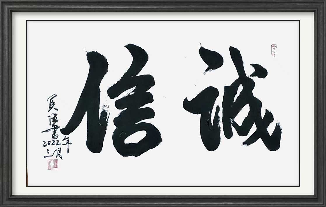 关崇影一生热爱书法,工作闲暇之余不忘临摹名家字贴,对历代各名家书法心摹手追,采各众长,冶于一炉,自成一体,尤为对榜书情有独钟,下笔大胆有力, 揮洒自然,不拘小节,利落洒脱,彰显个性。