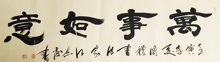 历朝历代的书法家,都是以书法寄托情怀,以书法畅达心境,汪志发显然也是如此。虽未能亲自观临创作之时,但从他的作品中可以感受到其书写时的洒脱与自然,笔端凝聚心神,落笔写韵意,这种艺术感染力带动起观赏的情绪流,观字知心,真实不虚。一步一脚印,一家一碑帖,汪志发临碑不辍,隶书已经走入意境,抒而写之,心手双畅!