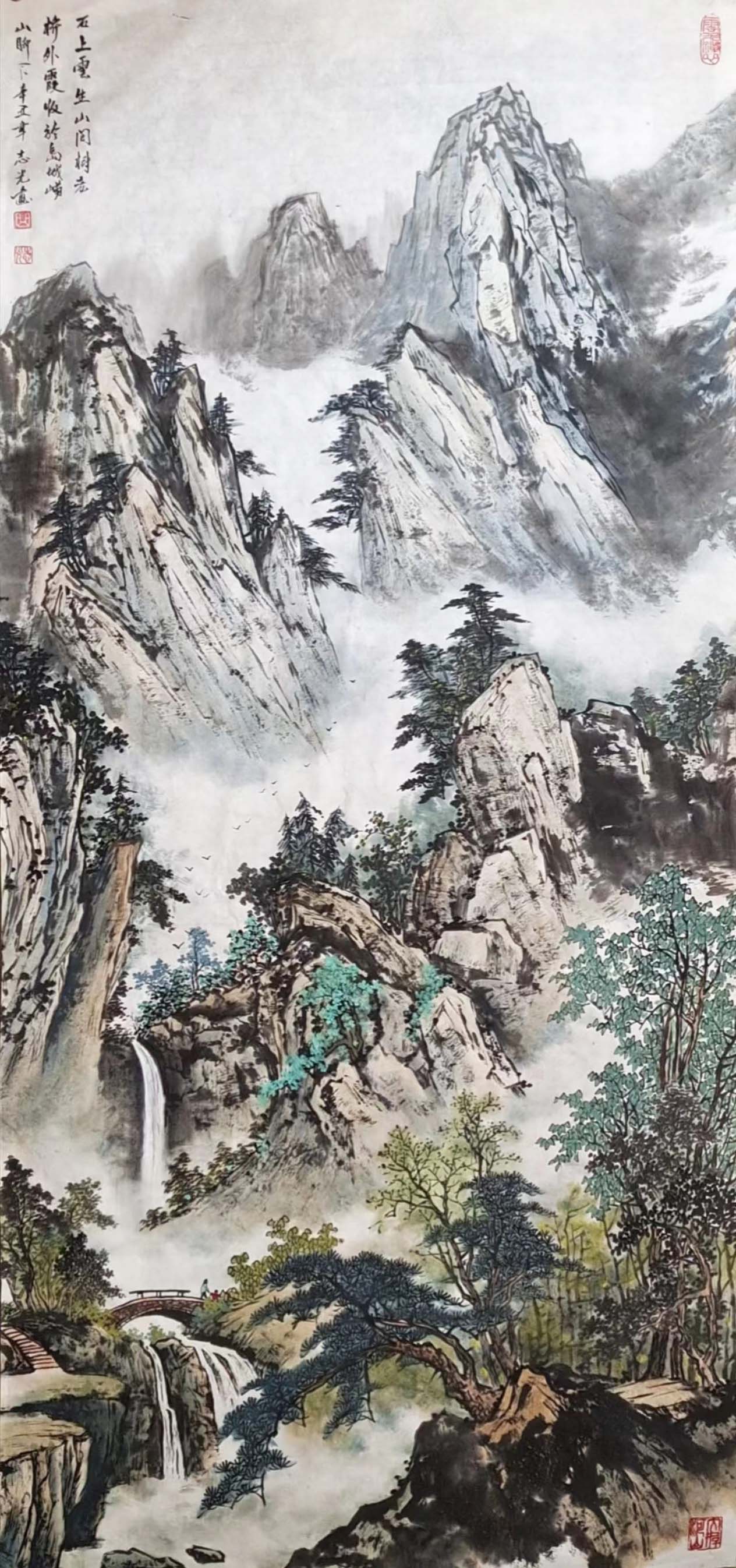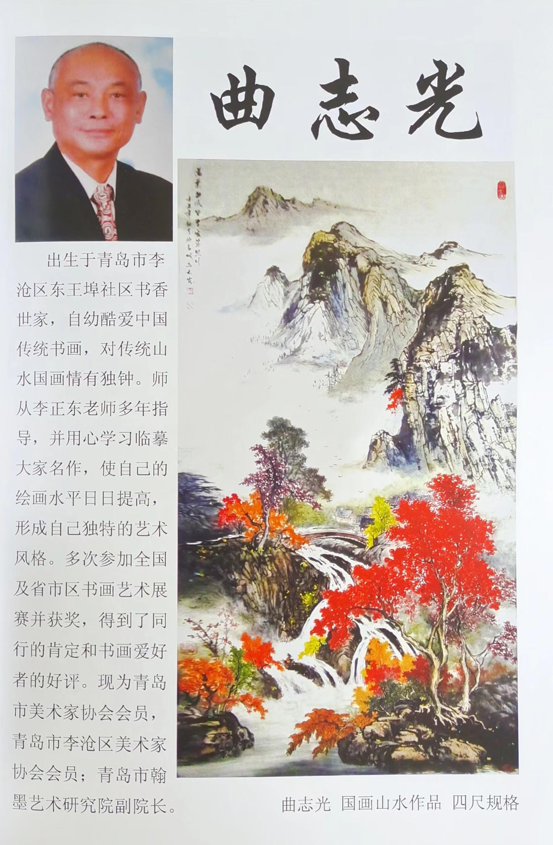 曲志光,笔名:芽子,生于1968年,山东青岛市人,书香世家,国家一级美术师。自幼酷爱中国传统书画艺术,对传统山水国画情有独钟。师从著名画家李正东老师多年指导,并用心学习临摹大家名作,数十载笔耕不辍,绘画水平日日提高,形成了自己独特的艺术风格。