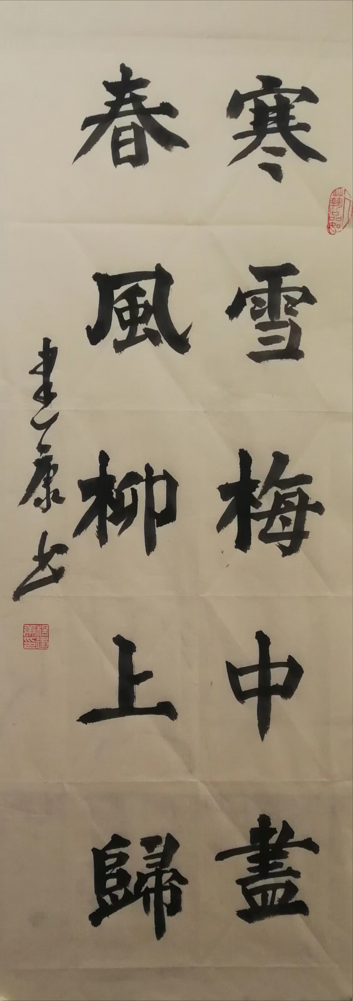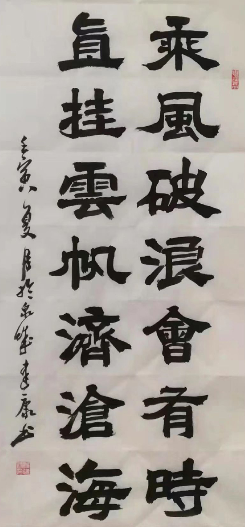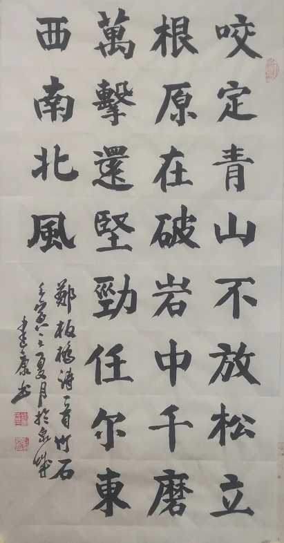 杨建康,男,汉族,1959 年生,山东省济南市人。1983 年毕业于山东师范大学,自幼酷爱书法,主攻颜体、隶书、魏碑及二王、米芾等书体。