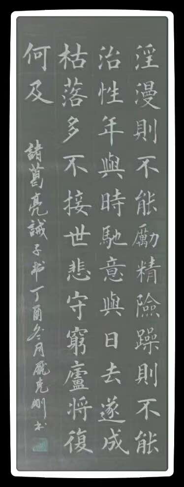 庞克刚,系河南省叶县人。在父亲的熏陶下自幼喜爱书法,数十年如一日,始学赵体、二王、欧体,近年来主攻欧体。在欧体的练习中很幸运的得到了田英章老师和刘海峰老师的亲自指导,受益匪浅。学书无日不临池是我的座右铭,楷书有了很大的进步,近几年多次参加全国书画大型比赛,在第六届、第九届羲之杯全国诗书画家邀请赛荣获一等奖,在中国国际书法艺术大赛中荣获银奖,在2016年“溪口杯全国书画印创作大赛中荣获银奖,在2019年全国诗书画大赛中荣获书法作品特等奖。