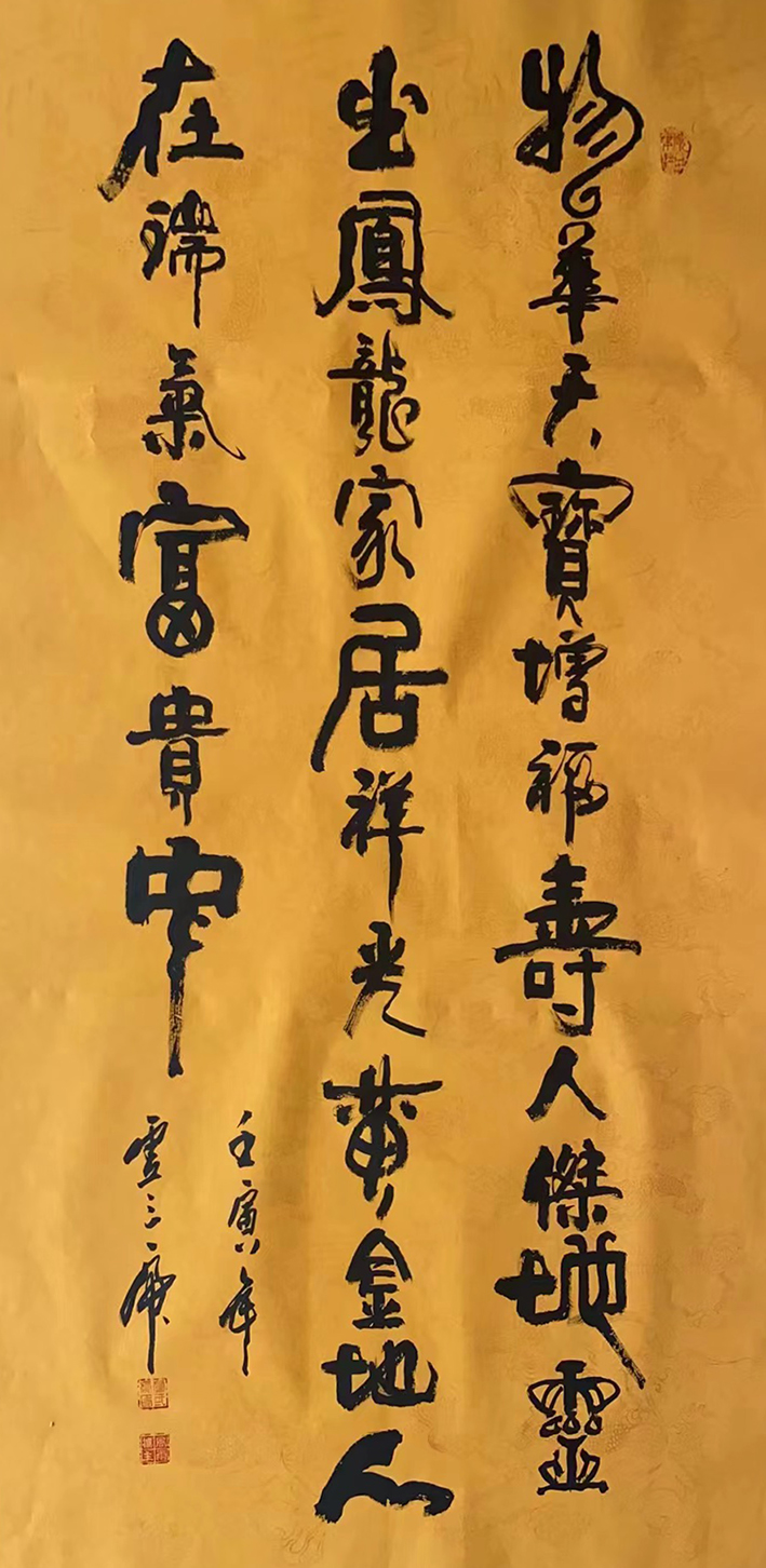 书法特点:龙凤体书法是行书、草书、 篆书 、隶书、楷书的结合体,既有篆书、隶书的端庄秀美,又有行书、草书的潇洒飘逸,对中国传统文化的传承和发展做出了不朽的贡献,在2006年将龙凤体申遗成功,成为了国家级的非物质文化遗产。