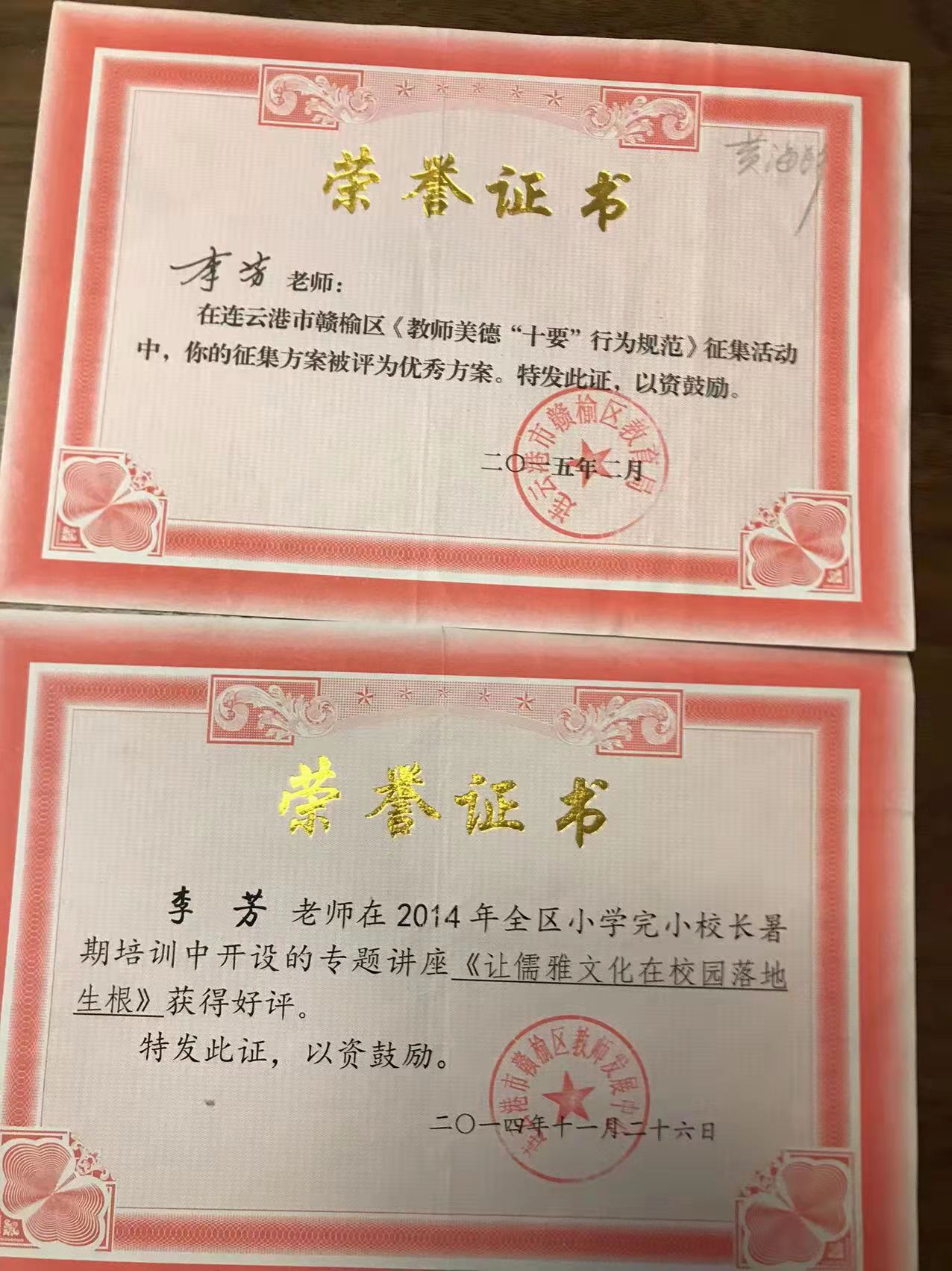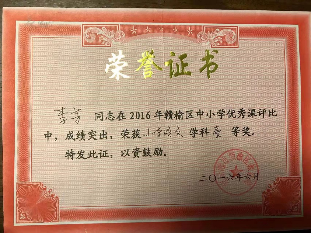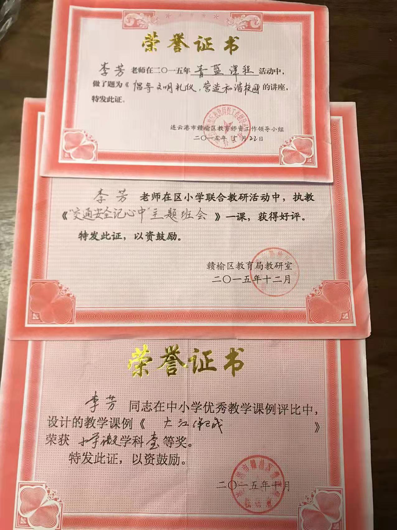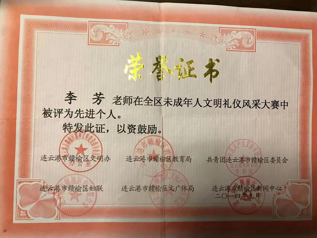 宝剑锋从磨砺出,梅花香自苦寒来。2013年被评为“连云港市优秀班主任”。2014年被评为“市333骨干教师”,区“311骨干教师”。2014年获连云港班主任基本功大赛一等奖 。2015年获赣榆区语文基本功一等奖。2015年被区教育局评为“课堂教学改革领航教师”。2015年录像课获得国家级二等奖。2016年论文发表在省刊物《小学生》。2017年论文发表在省刊物《教育艺术》。2019年被评为“连云港市333班级管理标兵”。2020年承担国家级法育课题研究获国家级一等奖。2021年所带班级被评为连云港市“优秀班级集体”。2021年论文发表在《小学教学研究》。数篇论文获省市级评比一等奖。2021年创新朗诵抖音视频,得到全国各界网友的点赞与关注。在今后的工作当中不忘初心,牢记使命,向美好的明天扬帆起航!