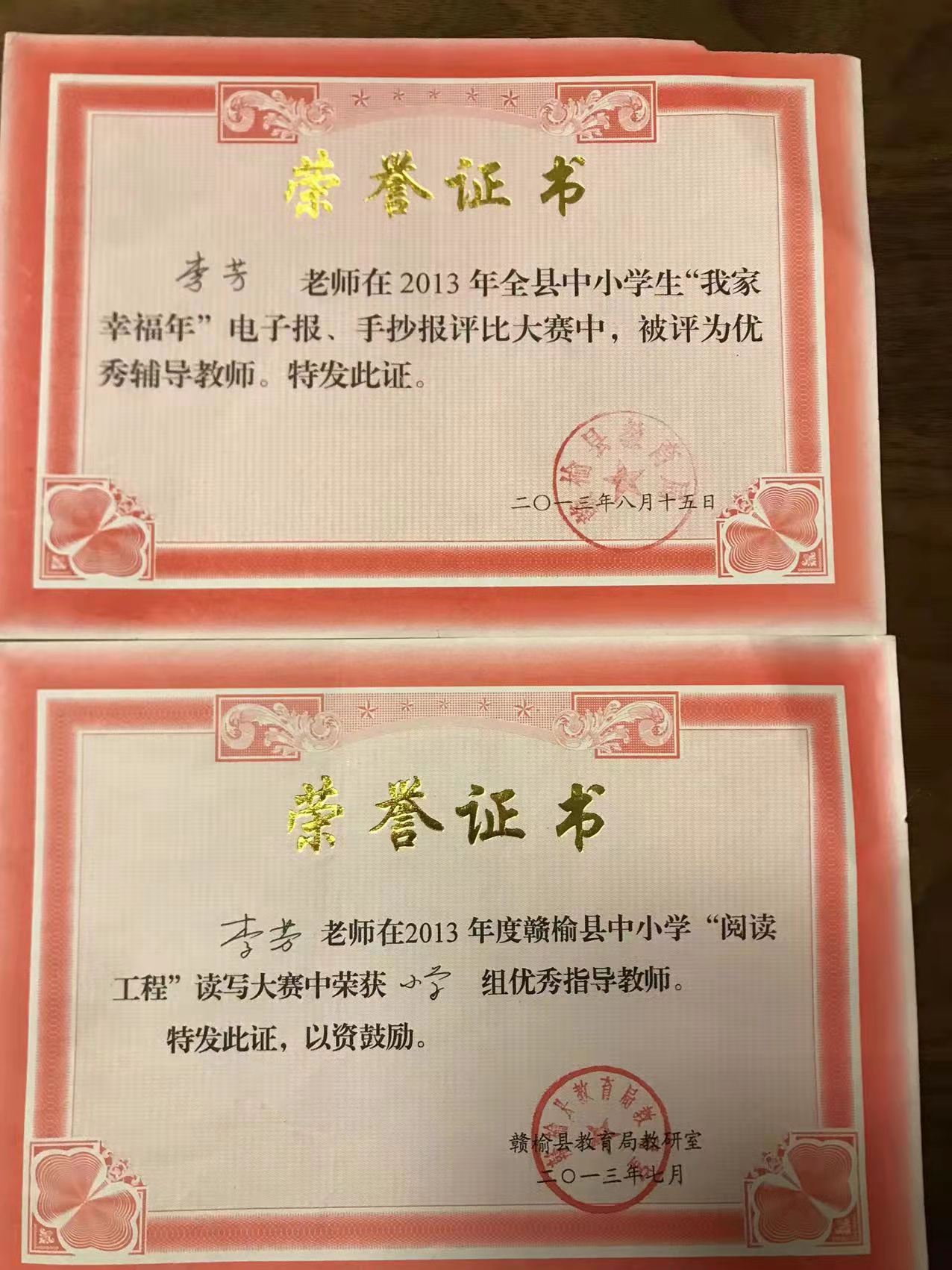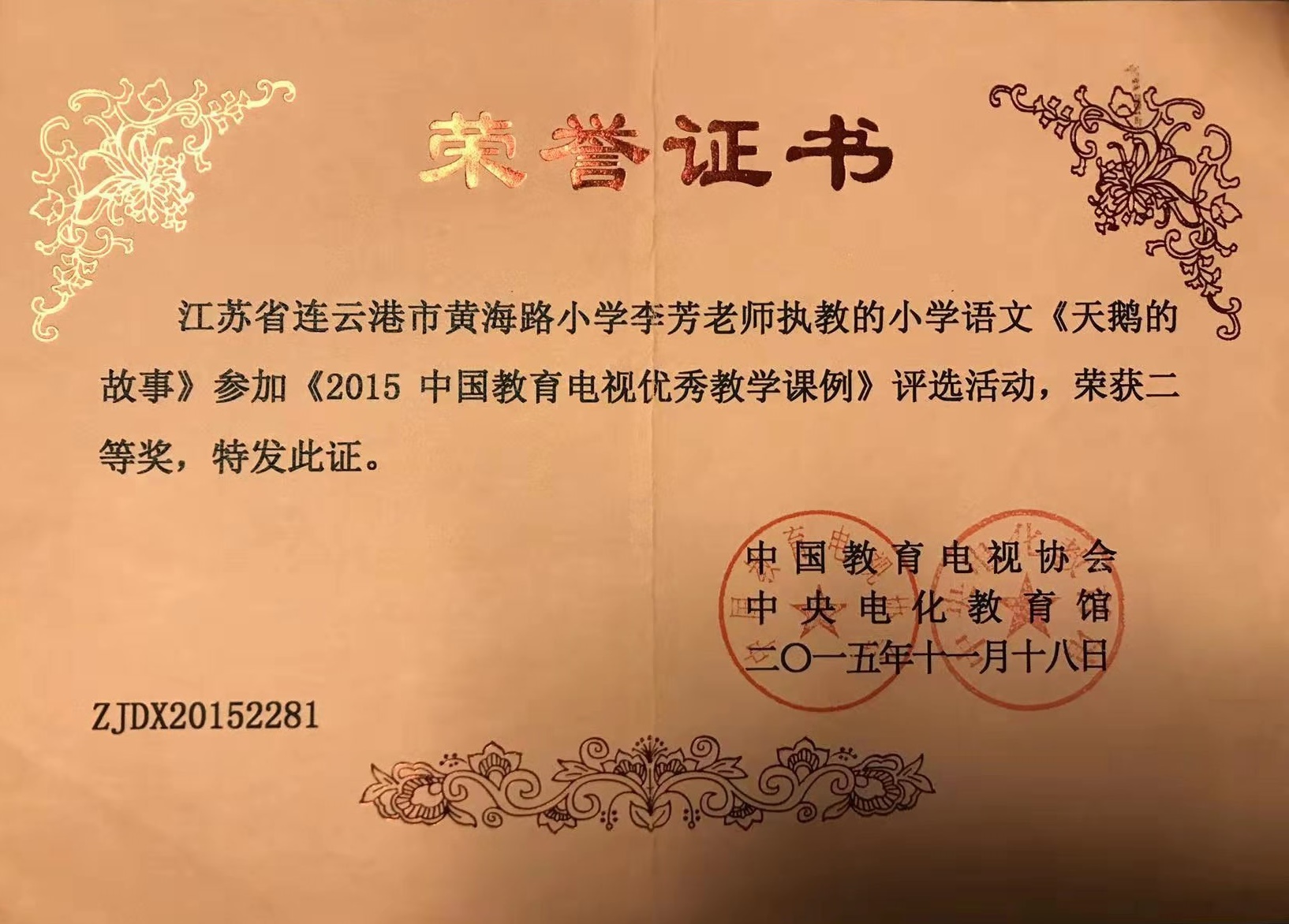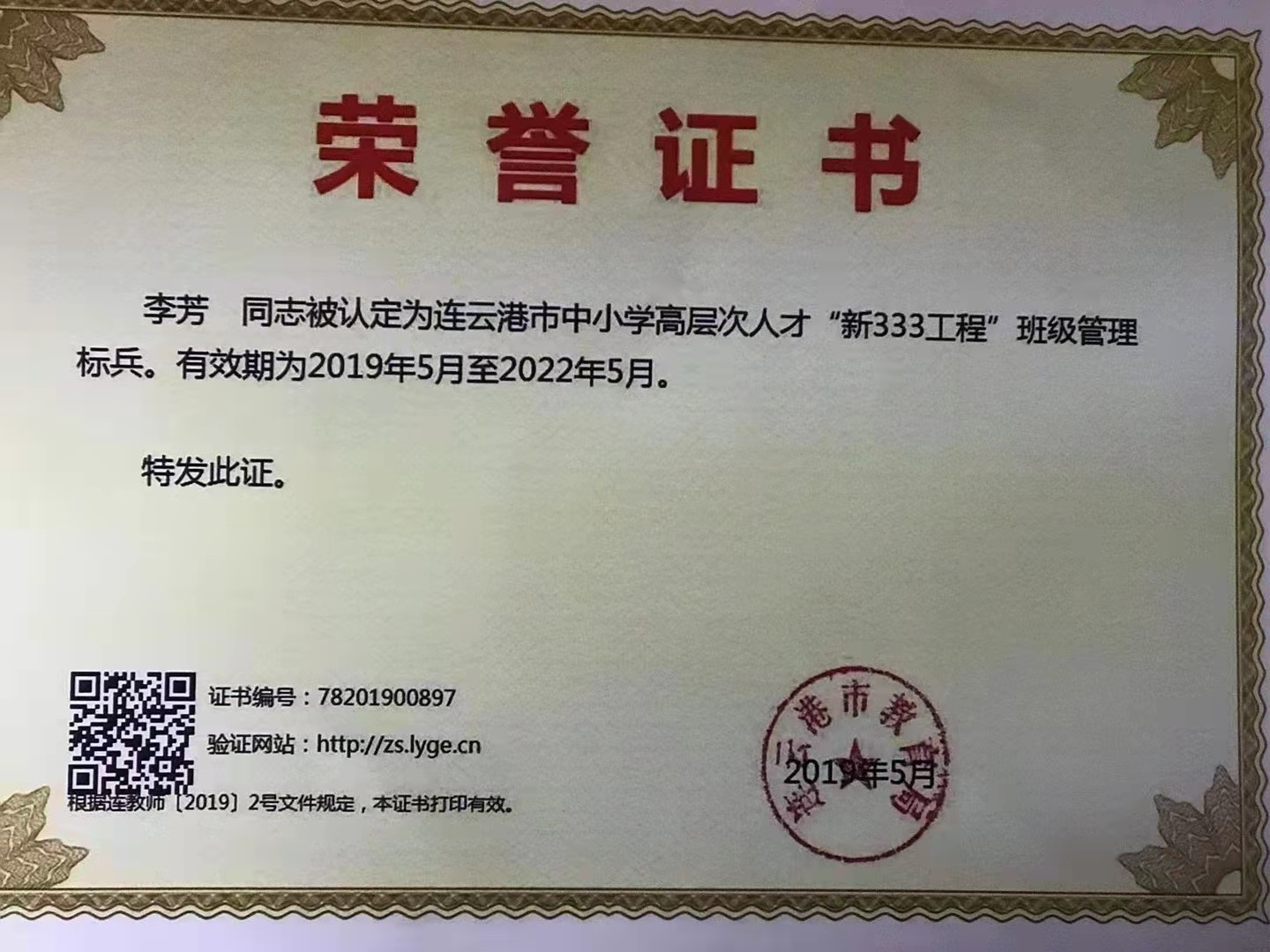 宝剑锋从磨砺出,梅花香自苦寒来。2013年被评为“连云港市优秀班主任”。2014年被评为“市333骨干教师”,区“311骨干教师”。2014年获连云港班主任基本功大赛一等奖 。2015年获赣榆区语文基本功一等奖。2015年被区教育局评为“课堂教学改革领航教师”。2015年录像课获得国家级二等奖。2016年论文发表在省刊物《小学生》。2017年论文发表在省刊物《教育艺术》。2019年被评为“连云港市333班级管理标兵”。2020年承担国家级法育课题研究获国家级一等奖。2021年所带班级被评为连云港市“优秀班级集体”。2021年论文发表在《小学教学研究》。数篇论文获省市级评比一等奖。2021年创新朗诵抖音视频,得到全国各界网友的点赞与关注。在今后的工作当中不忘初心,牢记使命,向美好的明天扬帆起航!