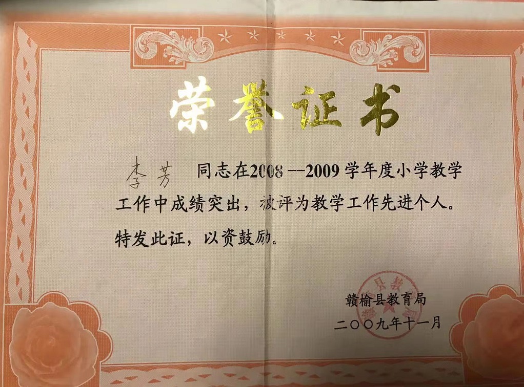 清风明月,桃李天下,为人师表,以师为荣。几十年如一日,奋斗在教育界这个育才之地,教诲如舂风,一直任班主任兼语文教学工作,为了提高教学质量,不断追求新的学生知识,增强新的教学模式,受到学校领导好评、同行们的厚爱与支持!在教育行业,热爱本职工作,暖爱学生,和家长一道,育仁善德,奋斗不止,挑战未来,用园丁师恩去担当重任,培养一批又一批优秀学子,通过师生心连心的拼搏,园满出色的完成各项任务,获得显著突破性的成就。