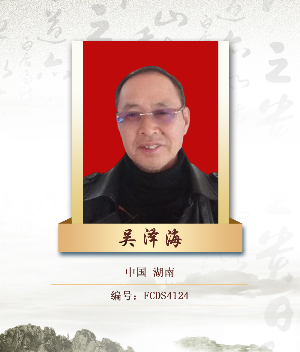 吴泽海,男,1954年1月出生,湖南临澧合口镇人。11岁起拜合口镇名木雕刻大师石显武学徒6年。1985年合口镇政府合心阁木雕系吴与师石显武共同雕刻完成。1986年师父石显武去世,吴大师16就独闯雕刻行,并在全国各地从事木雕和根雕艺术谋生,50多年来不断学习总结融合木雕的技艺与精髓,学以致用、提升技艺。