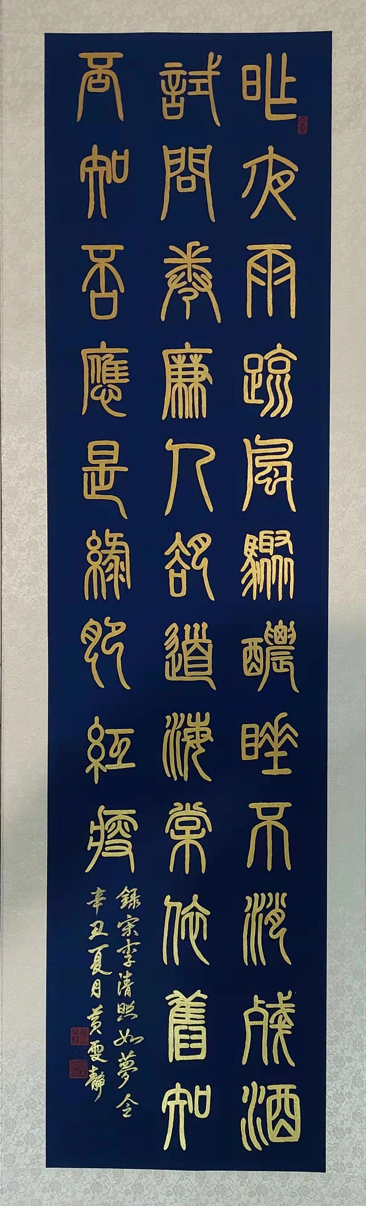 后跟随台湾缘旭书会理事長柯有泽老师,以及台湾墨缘社社長楊聯福老师学习书艺 。她认为书法不但能修身养性,还能延年益寿。书法不但是中华文化的瑰宝及文字艺术之精髓。一纸一笔一墨在不同的人手中呈现出千变万化的面貌.实在有趣,书法同时也是文学、考古学、哲学。研习书法还能延年益寿,一学多益。其作品之前也参加了第36届国际蘭亭展和台湾中国時報的经典冬拍展览及缘旭庚子年展等.作品受到收藏家的青睐与收藏.余贵勇将军也有收藏其作品。