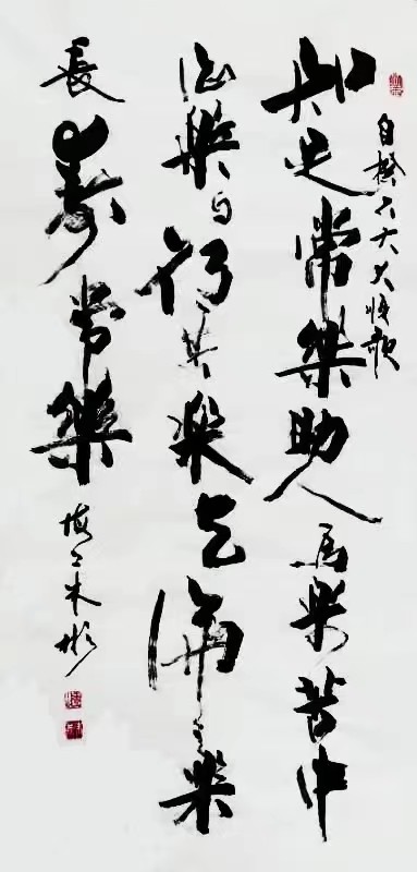 年少时师从新魏体创始人:“非遗“保护之大师周华金先生。他曾得益于前贤任政、赵冷月等教诲,受教于周志高先生点拨。以魏碑之功玩笔书艺,尤擅行草隶书;锲而不舍的朱彬挥亳捉笔濡墨豪放爽朗、生动通暢又不事雕琢;其笔端节奏刻画的线条造型艺术的古风雅趣、时尚活力透烁出他多才多艺、乐天豁达的性格和品格,极具特色。