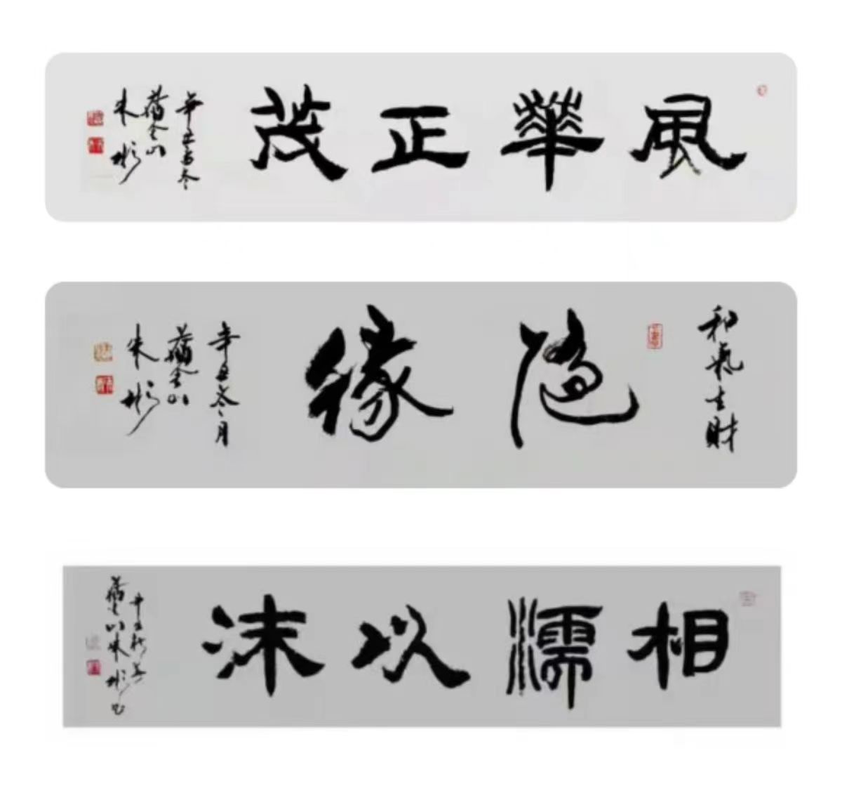 朱彬书写的《中国梦》《福寿康宁》《酒》等六幅书法作品被二次推荐发行,作为中国艺术礼品中心“百年巨匠 传世国瓷”七款艺术瓷盘“国礼”由景德镇精制发行。中国邮政出版发行了《盛世中国 传承经典》12枚市场流通纪念邮票,日本邮政也出版发行了《中华文化大使~朱彬》…父女书画专辑邮册,为海内外收藏家和爱好者所珍藏。