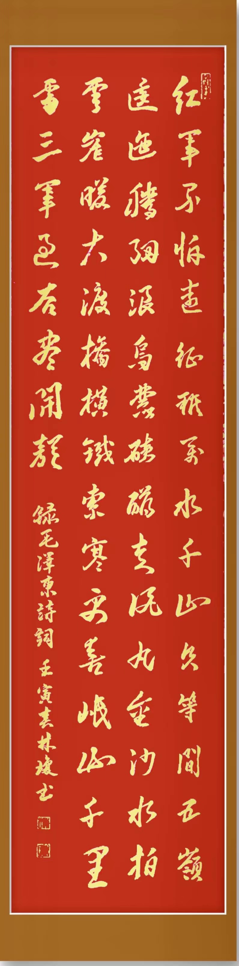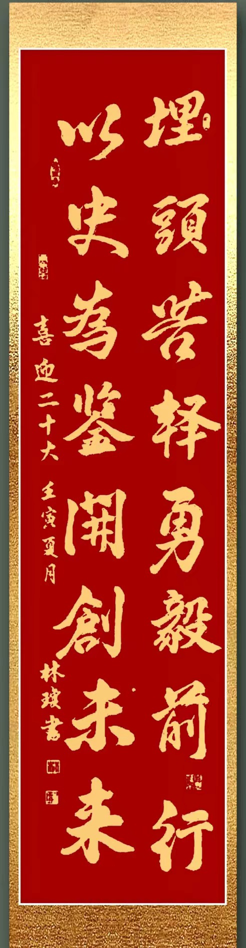 林琼先生的书法作品可谓是具有着与时代同呼吸的文化脉络,而其长久以来的翰墨历途,也不仅只是让他的众幅书法作品展现出了非凡的文化造诣,在自身的人品内涵上,林琼先生也同样是有修于极高的文人魅力,是谓书品人品同臻一境也!取法古典,是其创作翰墨作品的根本所在,正如清代名家朱和羹先贤于《临池心解》一书中所言那般,是曰:“凡临摹须专力一家,然后以各家总览揣摩,自然胸中餍饫,腕下精熟。久之眼光广阔,志趣高深,集众长以为己有,方得出群境地!”而今日林琼先生的众幅书法作品,也恰恰就是有依此论而行笔!于内是可蕴藉文人风骨和书卷之气为一体,取法二王余韵,兼顾时代风尚,是得高古而不泥,更见逸宕而不拘,正品之格,雅俗共赏!于外则是有抒于高古笔墨,笔法所致行云流水,提笔有道,行笔自然,墨迹之间,亦是能于刚柔中赋奇绝,是谓笔酣而墨畅,厚朴而俊逸也!一幅幅书法所成,四字真言是乃大气磅礴,长篇高作是乃气贯神通,而整幅字体的上下左右间,也恰是犹如列阵之势,可察品貌端雅,可品结体妙然!