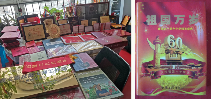在参加国际、国内各种赛事中,多次荣获国际、国内各类特等、特别、金、银与铜奖;共和国“飞马金奖、共和国功勋名人杰出贡献奖、中国剪纸德艺双馨奖、2010年上海世博会突出贡献奖、中俄文化艺术交流重大贡献奖和抢救羌族文化遗产贡献奖等31种奖项。并被授予“中俄世代友好大使、共和国功勋名人杰出贡献人物、中法艺术交流名人、榜样中国•知名艺术家、当代中国艺术名家、中国时代工艺大师、孝文化剪纸艺术家、中华国礼世界著名剪纸艺术家等28项荣誉称号。被载 入《祖国万岁》等名人大典共14部。发表论文二篇。拥有自主知识产权394项。