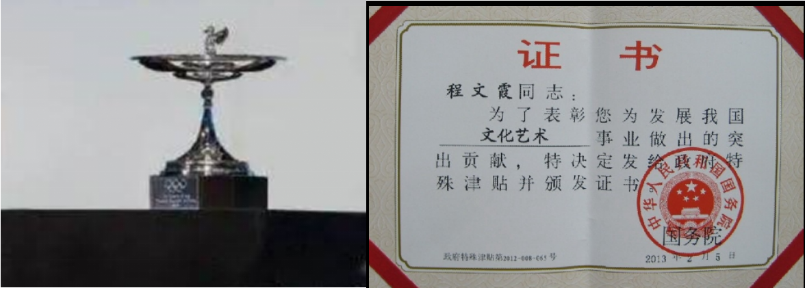 2013年2月,为了表彰程文霞为发展中国文化艺术事业做出的突出贡献,由中华人民共和国国务院特决定程文霞享受国务院政府特殊津贴待遇;
