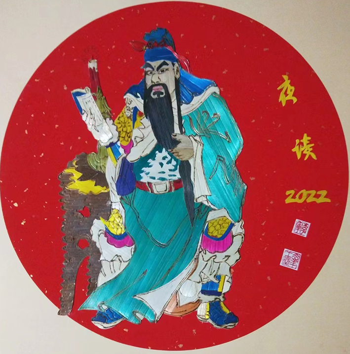 《夜读》:三国关公形象家喻户晓,深受大众喜爱,这幅麦秆画《夜读》乃为传承与创新的融合。关老爷是智慧的象征、忠诚重情义的象征、保护财气的象征、驱邪报平安的象征等。尤其在近阶段疫情还在漫延关公的形象更具新意。夜深人静狗不叫,正是男儿读书时,关羽秉烛读兵书,"不战而屈人之兵,善之善者也"。